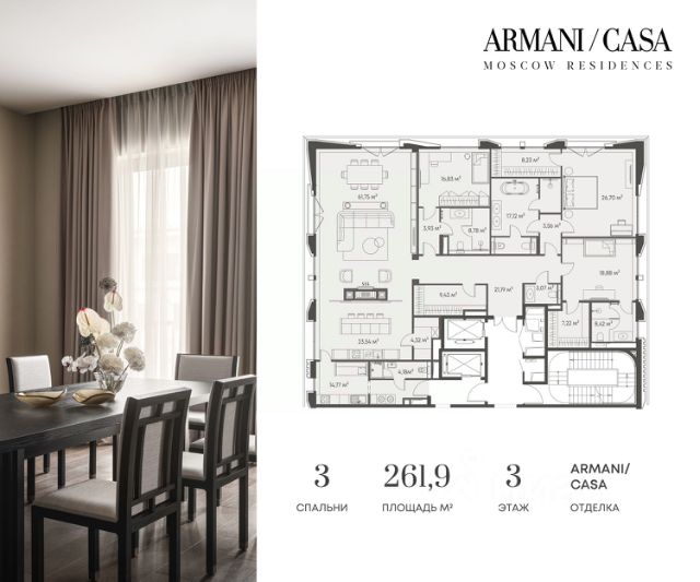 Последние лоты в продаже! КВАРТИРЫ ГОТОВЫ К ПРОЖИВАНИЮ Armani / Casa Moscow Residences — первый и единственный в России проект, созданный в партнерстве с легендарным итальянским домом Armani. Это не просто жилье, а произведение искусства, где каждая деталь отражает безупречный вкус и изысканность итальянского стиля. Комплекс расположился в самом аутентичном историческом районе Москвы — Якиманке. Эта локация известна как "Золотой треугольник искусств": всего в нескольких шагах находятся Третьяковская галерея, Дом культуры ГЭС-2 и новое здание Третьяковки. Всего 26 резиденций в доме создают особую атмосферу приватности и камерности. Это самый камерный проект в Замоскворечье, где каждый житель сможет насладиться тишиной и уютом, вдали от городской суеты. Архитектура создана знаменитым британским бюро John McAslan + Partners. Фасад из натурального камня и элементы из анодированной латуни создают неповторимый облик, гармонично вписывающийся в исторический контекст района. Эксклюзивный дизайн интерьеров от Armani/Casa, премиальные кухни с техникой Gaggenau, сантехника Armani/Roca, инженерная доска из дуба, итальянский мрамор в отделке и дровяные камины с порталами из мрамора создают атмосферу истинной роскоши. Комплекс оснащен всем необходимым для роскошной жизни: фитнес-центр с оборудованием Technogym, спа-зона с хаммамом, детская игровая комната, собственная кофейня и винный бутик, подземный паркинг с прямым доступом к лифтам. Профессиональное управление комплексом обеспечивает безупречный сервис на высшем уровне. Отдельные сервисные лифты для персонала гарантируют комфортное разделение потоков движения. Круглосуточный консьерж-сервис берет на себя все заботы резидентов, обеспечивая максимальный комфорт проживания. Квартиры готовы к переезду! Доступна беспроцентная рассрочка на 1 год Купить 4-комнатную квартиру в новостройке рядом с метро Октябрьская.