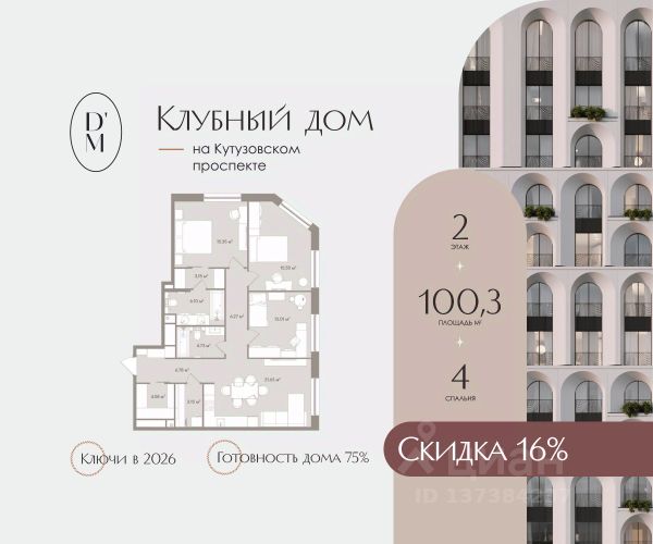 Клубный дом DORO MILLE расположен в одном из самых престижных и исторически значимых районов Москвы — Дорогомилово. Уникальная локация DORO MILLE, где гармонично сочетаются тишина, приватность и доступность ко всем важнейшим объектам столицы. Дорогомилово — это "тихий центр", предлагающий своим жителям не только спокойствие и уют, но и великолепную транспортную доступность. Клубный дом расположен всего в 7 минутах ходьбы от станции метро "Киевская", а также в непосредственной близости к Кутузовскому проспекту, одной из главных магистралей Москвы. Отсюда легко добраться до всех значимых деловых и культурных центров: в нескольких минутах езды Садовое и Бульварное кольцо, Кремль, Москва-Сити, ЦУМ и ГУМ. Комплекс расположен в глубине Дорогомиловских улиц, вдали от городского шума и суеты. Здесь царит атмосфера старомосковской аристократичности, где соседствуют исторические здания и современные комплексы. Каждый элемент в DORO MILLE продуман до мелочей: от элегантного фасада, состоящего из 343 арок, до просторных лотов с выверенной эргономикой и безупречного сервиса. Архитектура вдохновлена итальянским неоимпериализмом и испанским неомодернизмом, придавая зданию неповторимую легкость и изящество. Всего 150 апартаментов и 6 пентхаусов предлагают широкий выбор планировочных решений, включая студии, варианты с одной-четырьмя спальнями, каминами и верандами. Каждый лот спроектирован так, чтобы увеличить эффективное пространство и обеспечить максимальный комфорт для резидентов: окна в ванных комнатах, несколько гардеробных и просторные гостиные-столовые. Жители DORO MILLE смогут наслаждаться не только исключительными условиями проживания, но и полной приватностью. Закрытый двор-сад без машин, выполненный по проекту архитектурного бюро Wowhaus, превратится в собственный зеленый оазис в центре Москвы с функциональными зонами для отдыха и спорта. Проект был высоко оценен профессиональным сообществом, завоевав множество наград, включая премию Move Realty Awards за лучшие архитектурные решения и премию Urban Awards за создание нового формата недвижимости. Клубный дом DORO MILLE — это истинное воплощение мечты о городской жизни в окружении искусства, уюта и изящной архитектуры. Возможно приобретение по специальным условиям. Стоимость апартамента указана с учетом применения скидки от застройщика. Подробности о проекте и условиях покупки уточняйте в отделе продаж.