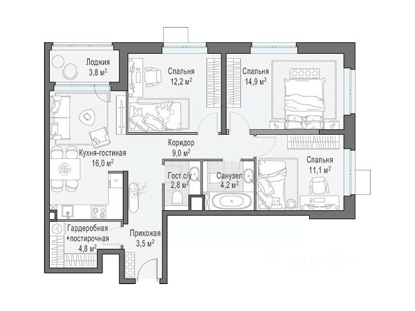 4-комнатная квартира площадью 100.40 кв.м., расположенная на 2 этаже 53-этажного небоскреба бизнес-класса это именно то, что вы ищете! AFI Tower — это не просто жилой комплекс. Это место, где каждая деталь заботливо продумана, чтобы сделать вашу жизнь удивительной и комфортной. Транспортная доступность - AFI Tower расположен близко к проезду Серебрякова, что обеспечивает быстрый доступ к Третьему Транспортному Кольцу и МКАД. За 15 минут можно легко добраться до ключевых транспортных магистралей в зависимости от дорожной ситуации. - В пешей доступности находятся станции метро "Свиблово" и "Ботанический сад" — это дает возможность жителям легко перемещаться по городу. Рядом также расположена станция Московского центрального кольца у "Ботанического сада". Архитектура: - Башня AFI Tower привлекает своим смелым архитектурным решением. Фасад, выполненный в виде мягкой волны, делает здание узнаваемым и уникальным в контексте стандартных высоток. С высотой в 182,4 метра, она становится неповторимой доминантой в Свиблово. Внутренняя инфраструктура: - Лобби AFI Tower выделяется современным дизайном, высокими потолками от 2,9 м до 3,3 м и использованием качественных материалов. Это визитная карточка здания, предоставляющая посетителям первое впечатление. Внутреннее пространство продумано для комфорта и функциональности. Характеристики квартир: - Здесь каждая квартира — уникальная история. От 19 до 116 м² площади, три варианта отделки — светлый, темный или white box, чтобы ваш дом отражал ваш вкус и стиль. Принимайте решение не просто о покупке жилья, а о создании своего собственного уютного уголка. Удобства внутри AFI Tower: - В самом доме целый мир удобств и развлечений. Ресторан, библиотека, прачечная и коворкинг — каждое место наполнено энергией и возможностями. Вечерами, уютная кинозона с кинопроектором и настольными играми создает атмосферу веселья и отдыха. Экология и окружение: - Жить в AFI Tower — значит быть частью уникального окружения. Близость к пруду и зеленому скверу придает местности неописуемое очарование. Вид из окон на Москву, ВДНХ и парки создают вдохновляющий пейзаж. А безопасность и удобство парковки добавляют приятные моменты к вашему образу жизни. Продается 4-комнатная квартира в новостройке рядом с метро Свиблово.