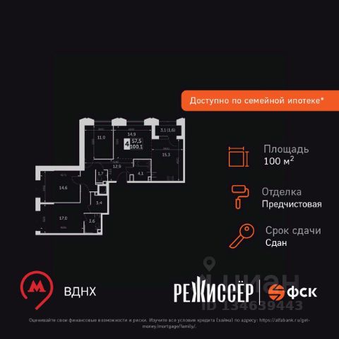 • ✓ В базе Циан 56 4-комнатных квартир в новостройке рядом с метро ВДНХ