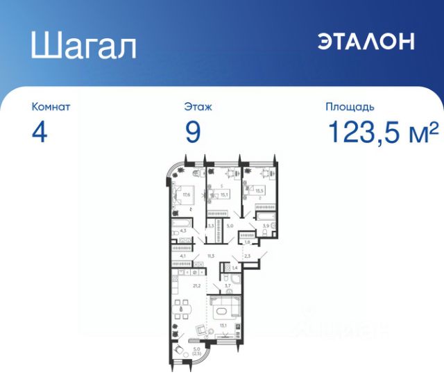 Продается 4-к квартира без отделки в ЖК "Шагал". Общая площадь квартиры — 121.6 кв. м, этаж 3 из 10. Тип дома — монолитный. Цена указана при 100% оплате. Квартал Шагал — крупнейший проект комплексного освоения в Москве. В проекте реализуется продуманная система маршрутов. Еда, покупки, услуги, прогулки, спорт, образование, работа и развлечения — все будет находиться рядом с домом: принцип 15-минутной доступности инфраструктуры и сервисов. Разнообразие и продуманность пешеходных маршрутов, а также короткие расстояния между основными точками притяжения мотивируют резидентов Шагал с удовольствием передвигаться по району пешком, не выпадая из ритма большого города. Продуманная транспортная сеть района и безопасный скоростной режим создают комфортные условия для перемещений любым способом: на автобусе, машине, самокате или велосипеде. Не нужно выезжать из района, чтобы получить комфорт и сервис самого высокого современного стандарта: все необходимые услуги, инфраструктура, парки и вторая по протяженности набережная в городе — на расстоянии 15-минутной прогулки от вашего дома. Квартал Шагал станет первым в Москве жилым районом, где будут комплексно реализованы инновационные подходы в проектировании и строительстве зданий. Архитектурная композиция состоит из домов отличающегося типа. Высотные башни-доминанты с видовыми квартирами, дома пониже, растворяющиеся в спокойствии внутренних двориков, малоэтажные камерные таунхаусы и разноэтажные дома с лоджиями на первой береговой линии соединяются в одно эстетичное современное произведение. В результате создаётся насыщенное идентичное пространство, подчёркнутое плавностью природных форм, наполненное светом, воздухом и свободой. Продам 4-комнатную квартиру в новостройке на набережной Марка Шагала в Москве.