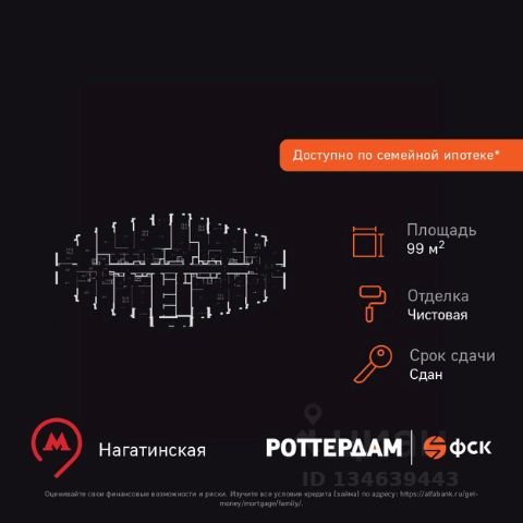 Прямая продажа от застройщика! Жилой Комплекс бизнес-класса на набережной возле Нагатинского причала. Продаётся 4-к квартира номер 527 общей площадью 99.2 кв.м. на 19-м этаже 29 этажного здания. Чистовая отделка. Цена с учётом скидки. Особенности квартиры: - Организуем показ в удобное для вас время! - Мастер-зона с санузлом. Уют и комфорт в одном пространстве. - Угловая планировка - больше пространства для ваших идей. - Мало квартир на этаже - уединение и тишина. - Окно в ванной - натуральное освещение для уюта и комфорта. - Увеличенная ширина окна/окон - больше света и визуального простора. - Угловое остекление - свет и воздушность в каждой комнате. - Евроформат - просторное и удобное жилье с отличной планировкой. - Гардеробная - удобство для хранения и организации вещей. - Просторная гардеробная - место для вашего личного пространства. - Ниша под шкаф - компактное и удобное место для вещей. Квартира с чистовой отделкой. Раскройте свою индивидуальность в создании своего уникального проекта, а трудоемкий ремонт мы возьмем на себя! Вы идете в ногу со временем и предпочитаете современные, универсальные дизайнерские решения? Или вы любитель строгой лаконичной классики? Тогда наши интерьеры придутся вам по душе! Выбирайте то, что ближе лично Вам и реализуйте свои задумки вместе с нами! Информация о комплексе: ЖК "Роттердам": идеальная транспортная доступность для любого настроения. Пешая доступность до метро, удобный выезд на Варшавское шоссе к ТТК и Садовому кольцу, а также живописная Нагатинская набережная с маршрутом до Кремля. Выбирайте метро, автомобиль, трамвай или велопрогулки вдоль реки - всё под рукой. Транспортная доступность: Всего в 5 минутах пешком до метро Нагатинская и 8 минутах от МЦК Верхние Котлы. Рядом Аэроэкспресс до метро Домодево. До ТТК 2,2 км и 4,9 км до Садового кольца. Внутренняя инфраструктура: ЖК "Роттердам": идеальный баланс работы и отдыха на Нагатинской набережной. Коворкинги, детские площадки и игровой центр для всей семьи. Рядом - 5 парков, спортивные и деловые центры в шаговой доступности. Архитектура сочетает высотные и малоэтажные здания без ощущения "каменных джунглей". Панорамные виды из окон верхних этажей и прямой выход к Москве-реке. Уединённость, безопасность и комфорт для тех, кто ценит личное пространство и время. Квартира с чистовой отделкой: ваш стиль без ремонта. Выбирайте современный дизайн или классику - мы воплотим ваши идеи. Готовые интерьеры для уникального дома. 4-комнатная квартира в новостройке в районе Нагатино-Садовники в Москве.