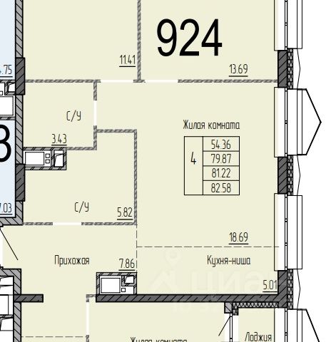 Продаётся 4-комнатная квартира 987, площадью 82,58 м², на 32 этаже в ЖК "Гранель Коломенское" корпус 1. Стоимость — от 34221331 руб. Квартира без отделки, планировка угловая, окна на улицу.