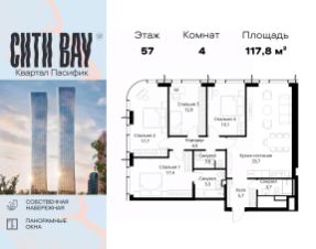 Прямая продажа от застройщика. Продаётся 4-комнатная квартира общей площадью 104.60 м² без отделки в ЖК Сити Бэй, квартале Пасифик, на 6-м этаже 59 этажного дома. Концепция жилого комплекса Сити Бэй - настоящий город в городе с отлично развитой инфраструктурой и собственной благоустроенной набережной. На территории жилого комплекса расположено пять кварталов - Атлантик, Пасифик, Индиан, Норс, Клиф. Жилой квартал Сити Бэй отличается оригинальной концепцией и выделяется среди других проектов такими характеристиками как: - Архитектура, - Виды из окон, - Природное окружение, вызывая гордость у жителей и восхищение у прохожих. Вся жизнь района Покровское-Стрешнево строится вокруг водных объектов: - Пойма реки Сходни с уникальной экосистемой, - Речка Химка и Химкинское водохранилище, - Москва-река, - Канал имени Москвы. Кругом вода, и местные с удовольствием этим пользуются. А сразу за рекой - центр водного спорта в Строгино с вейк-парком и яхт-Клубами. Помимо воды, здесь очень много зелени: - Рядом Сходненский ковш памятник природы, естественный амфитеатр глубиной 40 метров; - Парк при усадьбе Братцево с фруктовым садом; - Дубовая роща "Маяк", - Алешкинский лес; - Лесопарк Покровское-Стрешнево с пляжами и бобрами. Главные транспортные артерии района: - Волоколамское шоссе, - Таганско-Краснопресненская линия метро и МЦД-2. Всего за 20 минут можно добраться до центра на машине или метро, а МЦД связывает ЖК Сити Бэй с северными, восточными и юго-восточными районами. Компания MR предлагает своим клиентам специальные условия приобретения квартир в рамках программ ипотечного кредитования от банков-партнеров. 4-комнатная квартира в новостройке в районе Покровское-Стрешнево в Москве.