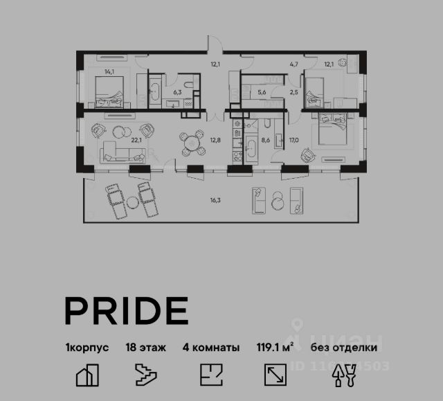 В премиальном жилом квартале PRIDE продается 4-комнатная квартира в 1 корпусе, на 9 этаже, в секции 8. Её общая площадь составляет 115.7 м². Пространство включает 3 уютные спальни 15 м², 15,7 м², 15,7 м², просторную кухню-гостиную 28,1 м² и 2 ванные комнаты 7,2 м² и 4,7 м². В квартире будет выполнена дизайнерская отделка, представленная двумя стилистическими решениями на выбор. Ключи в 2026 году. Удобная локация: Жилой квартал расположен в 15 минутах от Цветного бульвара в историческом районе Марьина Роща. До любой точки города быстро и удобно добраться, как на общественном транспорте, так и на авто — комплекс находится всего в 3 минутах от ТТК и в пешей доступности от метро. Яркая архитектура с переменной высотностью от 7 до 22 этажей от именитого бюро APEX формирует запоминающийся облик проекта. Развитая инфраструктура: Территория квартала делится на несколько отдельных частей: открытый просторный бульвар 3500 м² для прогулок и два внутренних камерных двора. Внутри предусмотрены площадки для спорта, места для игр и тихие пространства для отдыха и неторопливого общения. Коммерческие и торговые помещения спроектированы на уровне первых этажей: супермаркеты, магазины, рестораны и кофейни, барбершоп, спа-салон и другие сервисные точки. Образовательный центр со школой на 257 учеников и детским садом на 112 мест на собственной территории квартал - идеальное решение для семей с детьми. Таким образом, внутренняя инфраструктура PRIDE обеспечит все базовые потребности будущих жителей. Благоустроенная территория: Ландшафтный дизайн с многоуровневым и замысловатым озеленением будет радовать жителей на протяжении всех сезонов — богатая флора дворов включает в себя несколько десятков видов растений. Лобби как в лучших отелях мира: На первых этажах резидентов и гостей встретят лобби с авторским дизайном от Sundukovy Sisters, бюро знаменито своими работами для отелей и ресторанов премиум-класса во всем мире. Надежный застройщик: Девелопер PIONEER — компания с 24-летней историей. В портфеле — 40 проектов жилой, коммерческой, социальной и многофункциональной недвижимости в Москве и Санкт-Петербурге. С 2001 года было реализовано 2,9 млн м². В настоящее время 1,6 млн м² находятся в стадии проектирования и строительства. Среди новых знаковых проектов девелопера — премиальные жилые кварталы и деловые объекты класса A.