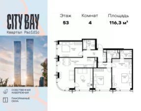 Прямая продажа от застройщика. Продаётся 4-комнатная квартира общей площадью 107.20 м² без отделки в ЖК City Вау, квартале Pacific, на 53-м этаже 59 этажного дома. Концепция жилого комплекса City Вау - настоящий город в городе с отлично развитой инфраструктурой и собственной благоустроенной набережной. На территории жилого комплекса расположено пять кварталов - Atlantic, Pacific, Indian, North, Cliff. Жилой квартал City Вау отличается оригинальной концепцией и выделяется среди других проектов такими характеристиками как: - Архитектура, - Виды из окон, - Природное окружение, вызывая гордость у жителей и восхищение у прохожих. Вся жизнь района Покровское-Стрешнево строится вокруг водных объектов: - Пойма реки Сходни с уникальной экосистемой, - Речка Химка и Химкинское водохранилище, - Москва-река, - Канал имени Москвы. Кругом вода, и местные с удовольствием этим пользуются. А сразу за рекой - центр водного спорта в Строгино с вейк-парком и яхт-клубами. Помимо воды, здесь очень много зелени: - Рядом Сходненский ковш памятник природы, естественный амфитеатр глубиной 40 метров; - Парк при усадьбе Братцево с фруктовым садом; - Дубовая роща "Маяк", - Алешкинский лес; - Лесопарк Покровское-Стрешнево с пляжами и бобрами. Главные транспортные артерии района: - Волоколамское шоссе, - Таганско-Краснопресненская линия метро и МЦД-2. Всего за 20 минут можно добраться до центра на машине или метро, а МЦД связывает ЖК City Вау с северными, восточными и юго-восточными районами. Компания MR предлагает своим клиентам специальные условия приобретения квартир в рамках программ ипотечного кредитования от банков-партнеров.