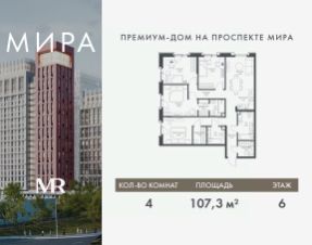 Прямая продажа от застройщика. Продаётся 4-комнатная квартира общей площадью 135.59 м² без отделки в доме премиум-класса МИРА на 23-м этаже 23 этажного дома. Квартира расположена в корпусе 2. Дом премиум-класса МИРА это: • Спокойный район с богатой историей и сложившейся инфраструктурой • Авторская архитектура на стыке классики и современности • Вход в парк прямо из жилого комплекса • Панорамные виды на Яузу, парки, ВДНХ и скульптуру "Рабочий и колхозница" • Удобные сервисы и безопасность для каждого резидента Расположение: Жилой квартал расположен в Алексеевском районе на северо-востоке Москвы, на второй линии домов, таким образом вы сможете дистанцироваться от шума и суеты проспекта Мира, но при этом будете жить недалеко от этой важной городской магистрали. Прямо у дома: • Парк Акведук • Река Яуза • Памятник "Рабочий и колхозница" Пешком: • 16 мин м. ВДНХ На автомобиле: • 12 мин ТТК • 15 мин Садовое кольцо • 12 мин Национальный парк "Лосиный остров" Благоустройство: Концепция благоустройства от бюро "ДРУЖБА" разработана в стиле "Лесная тропа". В уютном дворе расположились словно затерянные в лесу, площадки для отдыха. Они разделяются островками с травами, кустарниками, крупными камнями и деревьями, между которыми проходят узкие песчаные тропинки с деликатной подсветкой по вечерам. Центральной точкой притяжения для жителей станет главная площадь с фонтаном, которая открывается сразу из двух входных групп. Внутренний двор МИРА: • Детская площадка с зонами для игр малышей до трех лет и детей более старшего возраста • Спортивная площадка с профессиональным оборудованием для тренировок • Декоративные перголы • Воздушный арт-объект с подсветкой, похожий на облако • Чайный домик, где в отдельном отапливаемом павильоне можно в любое время года попить кофе с соседями или устроить камерное семейное чаепитие • Зоны для работы и отдыха с гамаком под навесом, скамейками и креслами Инфраструктура и окружение: В Алексеевском районе есть огромные благоустроенные парки, магазины, гимназии с высоким рейтингом и филиалы ВУЗов, частные и государственные детские сады, модные кофейни и фитнес-центры. В квартале МИРА предусмотрены: • 2 ресторана с видом на парк Акведук • 3 кафе • фитнес-студия • подземный паркинг на 330 машино-мест Компания MR предлагает своим клиентам специальные условия приобретения квартир в рамках программ ипотечного кредитования от банков-партнеров.