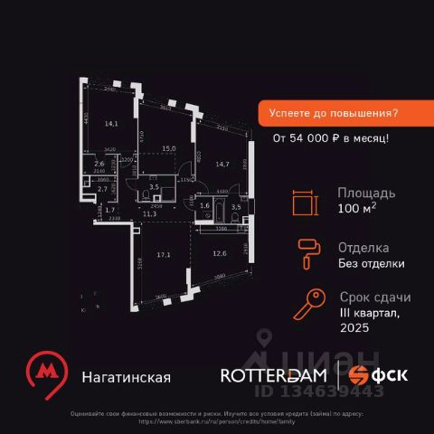 УСПЕЕТЕ КУПИТЬ ДО ПОВЫШЕНИЯ? От 54 000 рублей в месяц! Прямая продажа от застройщика! Жилой Комплекс бизнес-класса. Продаётся 4-к квартира номер 2 общей площадью 100.4 кв.м. на 2-м этаже 29 этажного здания. Без отделки. Цена с учётом скидки. Особенности квартиры: - Мастер-зона с гардеробной. Просторное место для отдыха и удобного хранения вещей. - Мастер-зона с санузлом. Уют и комфорт в одном пространстве. - Угловая планировка - больше пространства для ваших идей. - Мало квартир на этаже - уединение и тишина. - Окно в ванной - натуральное освещение для уюта и комфорта. - Увеличенная ширина окна/окон - больше света и визуального простора. - Увеличенное количество окон - дополнительное освещение и свежий воздух. - Угловое остекление - свет и воздушность в каждой комнате. - Гостевой санузел - комфорт и удобство для ваших гостей. - Душ помимо ванной - дополнительное удобство для вашей семьи. - Постирочная - организуйте пространство для стирки и сушки вещей. - Гибкая планировка - создайте пространство по своему вкусу. - Место для игры/занятия спортом - идеальное пространство для активных детей. - Просторная мягкая зона - комфорт и уют для отдыха всей семьи. - Возможность добавить спальное место - дополнительный комфорт для гостей. - Гардеробная - удобство для хранения и организации вещей. Информация о комплексе: В ЖК Роттердам отличное расположение, которое позволит вам выбирать свой сегодняшняшний маршрут и транспорт исходя из настроения, целей и погоды. Отсюда удобно добираться в центр как на метро станция находится в пешей доступности, так и на автомобиле. Варшавское шоссе связывает жилой комплекс с ТТК, а через Люсиновскую и Мытную улицы с Садовым кольцом. В качестве альтернативного маршрута можно использовать Нагатинскую набережную: дорога вдоль Москва-реки приведет к Кремлю и Павелецкому вокзалу. Для неспешной поездки предусмотрены трамвайные маршруты, а в теплое время года веломаршруты вдоль реки. Транспортная доступность: Всего в 5 минутах пешком до метро Нагатинская и 8 минутах от МЦК Верхние Котлы. Рядом Аэроэкспресс до метро Домодево. До ТТК 2,2 км и 4,9 км до Садового кольца. Внутренняя инфраструктура: Если вы ищете идеальный баланс между отдыхом и работой и обладаете активной жизненной позицией - ЖК Роттердам вам понравится. В ЖК: зоны коворкинга, плейхаб и детские площадки для отдыха всей семьей. Близость к деловому центру Москвы, в окружении 5 парков, рядом спортивные и развлекательные центры Если вы любите живописные виды и долгие прогулки - ЖК Роттердам - отличный вариант для вас, так как он расположен прямо на Нагатинской набережной с выходом на Москву реку! В ЖК Роттердам соблюден баланс между высоткой и малоэтатажным зданием, которое не потеряло ощущение уюта и не создает впечатление городских джунглей Если вы любите быть на высоте и без ограничений - выбирайте верхние этажи Для тех, кто ценит комфорт и собственное время Для тех, кто ценит комфорт и личное пространство Для тех, кому