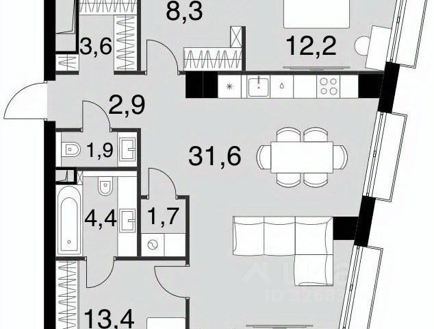 Продаётся 4-комнатная квартира 113.7 м². В жилом районе Алиа на 9-м этаже 11-этажного дома. Жилой район Алиа — это дома бизнес-класса у слияния Москвы-реки и Сходни. Алиа находится в Покровском-Стрешневе, экологически чистом районе на престижном северо-западе столицы. Район возводится на бывшей территории Тушинского аэрополя, где никогда не было промышленного производства. Алиа — это район разностороннего развития, спроектированный по принципу WORK.LIVE.PLAY.LEARN. Это "15-минутный город", где вся необходимая для комфортной жизни инфраструктура — на расстоянии приятной прогулки. У района удобное расположение: отсюда меньше 10 минут пешком до станций метро "Спартак" и "Тушинская" и всего полчаса на автомобиле до центра города или аэропорта Шереметьево. Архитектурную концепцию Алиа разработало бюро SOM (Skidmore, Owings & Merrill), авторы знаменитой "Бурдж-Халифа". В Алиа больше 140 планировочных решений, среди которых — редкие для Москвы форматы: квартиры с окном в ванной, пентхаус, сити-юниты и таунхаусы. Почти половина территории района отдана под благоустройство. В Алиа три парка: Линейный парк с кафе и магазинами, Центральный парк с амфитеатром, сухим фонтаном и большим плейхабом для детей всех возрастов и Прибрежный парк на собственной набережной, одной из самых длинных в Москве. В каждом урбан-блоке — закрытый внутренний двор с гипоаллергенными растениями и детской площадкой. В лобби каждого жилого корпуса в Алиа оборудована зона ожидания, колясочная, гостевой санузел и лапомойка для домашних животных. За стойкой ресепшена резидентов и их гостей встречает консьерж. Центральное лобби урбан-блока — это стильное общественное пространство с коворкингом, лаундж-зоной и кофе-пойнтом. Это "вторая гостиная" жителей урбан-блока и одно из мест, где формируется комьюнити Алиа. Два ключевых объекта инфраструктуры в Алиа — это спорткомплекс "Чкалов Арена", где представлены 25 видов спорта, и самый большой в стране бизнес-парк класса A, благодаря которому району обеспечено быстрое развитие. Продается 4-комнатная квартира в новостройке в округе СЗАО в Москве.