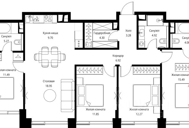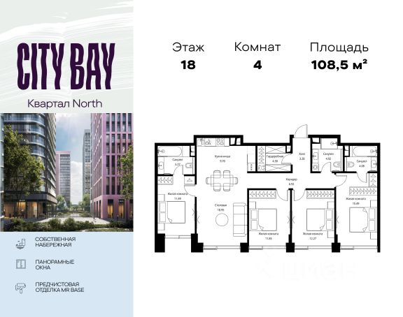 Прямая продажа от застройщика. Продаётся 4-комнатная квартира общей площадью 104.60 м² без отделки в ЖК City Вау, квартале Pacific, на 6-м этаже 59 этажного дома. Концепция жилого комплекса City Вау - настоящий город в городе с отлично развитой инфраструктурой и собственной благоустроенной набережной. На территории жилого комплекса расположено пять кварталов - Atlantic, Pacific, Indian, North, Cliff. Жилой квартал City Вау отличается оригинальной концепцией и выделяется среди других проектов такими характеристиками как: - Архитектура, - Виды из окон, - Природное окружение, вызывая гордость у жителей и восхищение у прохожих. Вся жизнь района Покровское-Стрешнево строится вокруг водных объектов: - Пойма реки Сходни с уникальной экосистемой, - Речка Химка и Химкинское водохранилище, - Москва-река, - Канал имени Москвы. Кругом вода, и местные с удовольствием этим пользуются. А сразу за рекой - центр водного спорта в Строгино с вейк-парком и яхт-клубами. Помимо воды, здесь очень много зелени: - Рядом Сходненский ковш памятник природы, естественный амфитеатр глубиной 40 метров; - Парк при усадьбе Братцево с фруктовым садом; - Дубовая роща "Маяк", - Алешкинский лес; - Лесопарк Покровское-Стрешнево с пляжами и бобрами. Главные транспортные артерии района: - Волоколамское шоссе, - Таганско-Краснопресненская линия метро и МЦД-2. Всего за 20 минут можно добраться до центра на машине или метро, а МЦД связывает ЖК City Вау с северными, восточными и юго-восточными районами. Компания MR предлагает своим клиентам специальные условия приобретения квартир в рамках программ ипотечного кредитования от банков-партнеров. Продам 4-комнатную квартиру в новостройке на шоссе Волоколамское в Москве.