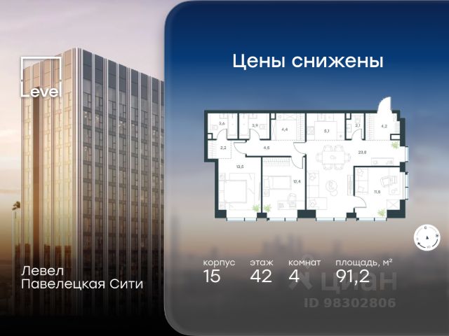 Рассрочка 0% с платежом от 250 000 ₽ в месяц. 4-комн. квартира в ЖК "ЭРА" на 33 этаже в 33 этажном здании Корпус 2. Общая площадь: 97.1 кв.м., жилая: 64.80 кв.м. Высота потолков 4.00 м. Современный премиум-квартал ЭРА на Дербеневской набережной, формирующий новый архитектурный облик Даниловского района Москвы. Жилой комплекс из шести высотных корпусов выполнен в актуальной интерпретации стиля ар-деко, где ритмичные линии фасадов, натуральный мрамор и изысканные орнаменты создают гармоничный и запоминающийся образ. ЭРА предлагает жителям единый просторный закрытый двор. Инфраструктура двора включает разнообразные детские игровые площадки, зоны для занятий спортом, а также места для спокойного отдыха — в всесезонном зеленом лабиринте или яблоневом саду. Для озеленения территории планируется высадка около 3000 деревьев и кустарников. Их сохранность обеспечат система автополива, а для комфорта в холодное время года малые архитектурные формы будут оборудованы подогревом. Первая очередь комплекса представлена тремя корпусами высотой от 27 до 33 этажей. Жителей встречают величественные входные группы по авторскому проекту бюро ХААСТ с высотой потолков 6,5 метров. Для максимального удобства каждая из них оборудована гостевым санузлом, просторной колясочной с выделенной зоной для мойки колес и лап питомцев. Доступ обеспечивается через современные системы безопасности: теплые тамбуры оснащены вызывными панелями с биометрическим контролем. Двери оборудованы электроприводами, что позволяет входить без усилий. В каждом вестибюле создано уютное лаунж-пространство — идеальная зона для отдыха или встречи гостей, дополняющая образ безупречного сервиса. Жителям комплекса доступен подземный паркинг с расширенной инфраструктурой. Здесь, для вашего удобства, расположена собственная автомойка на три поста. Паркинг также оборудован персональными кладовыми помещениями и специальными мусорокамерами на каждом из -1 этажей. Ключевое преимущество — превосходная локация в развивающемся районе с готовой инфраструктурой. Всего в 5 минутах от Садового кольца, в шаговой доступности от Замоскворечья и набережной Москвы-реки, вы сможете наслаждаться динамикой городской жизни. При этом в самом комплексе на первых этажах будут работать кафе, магазины, салоны красоты и детские образовательные пространства. ЭРА — это гармоничный симбиоз статусного адреса, безупречного сервиса и приватности для жизни вашей мечты. Продается 4-комнатная квартира в новостройке с отделкой в районе Даниловский в Москве.