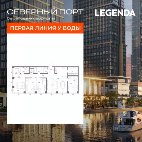 Четырехкомнатная квартира с предчистовой отделкой в ЖК "Северный Порт" на 10 этаже. Общая площадь: 134.8 кв.м., жилая: 55.7 кв.м., площадь просторной кухни-столовой: 40.8 кв.м. Угловая квартира, окна oбecпeчивaют paвнoмepнoe ocвeщeниe в тeчeниe дня. В квартире один совмещенный и один раздельный санузел. Высота потолков 3.15 м. Квартира находится в корпусе 7.2. Дом монолитный, одноподъездный, высотой 18 этажей. На этаже 4 квартиры. В подъезде 2 пассажирских и 1 грузовой лифт. Окончание строительства - 1 квартал 2028 года. Оформление сделки по договору долевого участия. В шаговой доступности от жилого комплекса имеются станции метро (расстояние по прямой): "Беломорская" (1.1 км), "Планерная" (1.5 км), "Речной вокзал" (1.6 км), также недалеко от этого корпуса находится станция метро "Ховрино". В проекте "Северный Порт" реализованы авторские решения девелопера LEGENDA, которые представлены уникальными фасадными решениями, коллекцией дизайнерских квартир, а также инновационным оснащением комплектацией TechnoBox - полностью технологически подготовленным пространством для любых современных сценариев жизни. В 1-ой очереди строительства проекта "Северный Порт" авторская комплектация TechnoBox представлена в корпусах 7.1 и 7.3 и включает в себя два направления: Технологически подготовленное пространство: - Smart Home Ready - стационарное и удаленное управление квартирой. - Air Design - всегда свежий воздух, никакого шума и пыли. - Мультизональное кондиционирование. - Мультисервисная сеть - единая сеть коммуникационных систем. Готовность к декорированию: - Шумоизоляция - комплексные меры для защиты от лишнего шума. - Подготовка стен - все стены подготовлены к отделке дизайнерскими материалами. - Выровненный пол - полы выровнены стяжкой из цементно-песчаной смеси, повышающей механическую прочность, и готовы к укладке покрытия. - Электрические сети - коммуникации расположены с учетом рекомендаций по расстановке мебели и техники. "Северный порт" от LEGENDA входит в крупномасштабный проект комплексного развития территории Северного речного порта, реализуемый правительством Москвы, и представляет собой микс жилой, коммерческой, социальной и общественной инфраструктуры. Автором концепции обустройства территории выступило архитектурное бюро Сергея Скуратова. Созданный дизайн-код лёг в основу проекта, разработанного LEGENDA совместно с архитектурным бюро KAMEN Architects. Город ставит новый акцент, создавая мощный центр притяжения в экологичной локации у Северного речного вокзала. Близость к воде, парковым зонам и футуристичный архитектурный образ определяют потенциал развития проекта на несколько десятилетий вперед. Важной частью проекта станет строительство самой протяженной благоустроенной набережной, которая соединится с парком Северного речного вокзала и создаст уникальное прогулочное пространство длиной 3,2 км, вдоль которого будет организован современный торговый променад. В основе концепции благоустройства ле 4-комнатная квартира в новостройке с отделкой рядом с метро Речной вокзал.