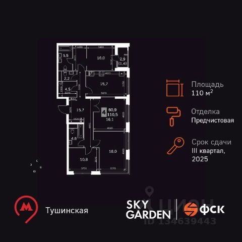 Прямая продажа от застройщика. Продаётся 4-комнатная квартира общей площадью 95.27 м² с предчистовой отделкой в ЖК City Вау, квартале North, на 46-м этаже 49 этажного дома. Концепция жилого комплекса City Вау - настоящий город в городе с отлично развитой инфраструктурой и собственной благоустроенной набережной. На территории жилого комплекса расположено пять кварталов - Atlantic, Pacific, Indian, North, Cliff. Жилой квартал City Вау отличается оригинальной концепцией и выделяется среди других проектов такими характеристиками как: - Архитектура, - Виды из окон, - Природное окружение, вызывая гордость у жителей и восхищение у прохожих. Вся жизнь района Покровское-Стрешнево строится вокруг водных объектов: - Пойма реки Сходни с уникальной экосистемой, - Речка Химка и Химкинское водохранилище, - Москва-река, - Канал имени Москвы. Кругом вода, и местные с удовольствием этим пользуются. А сразу за рекой - центр водного спорта в Строгино с вейк-парком и яхт-клубами. Помимо воды, здесь очень много зелени: - Рядом Сходненский ковш памятник природы, естественный амфитеатр глубиной 40 метров; - Парк при усадьбе Братцево с фруктовым садом; - Дубовая роща "Маяк", - Алешкинский лес; - Лесопарк Покровское-Стрешнево с пляжами и бобрами. Главные транспортные артерии района: - Волоколамское шоссе, - Таганско-Краснопресненская линия метро и МЦД-2. Всего за 20 минут можно добраться до центра на машине или метро, а МЦД связывает ЖК City Вау с северными, восточными и юго-восточными районами. Компания MR предлагает своим клиентам специальные условия приобретения квартир в рамках программ ипотечного кредитования от банков-партнеров.