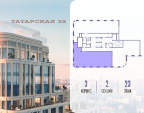 Продается просторная квартира площадью 155.30 м2 в жилом комплексе ТАТАРСКАЯ, 35. Квартира находится в 2 секции корпуса 3. Этаж 15-й из 23. Квартира без чистовой отделки, с просторной кухней 58.00 м2. Жилая площадь 61.70 м2. Высота потолка от 3.50. ТАТАРСКАЯ, 35 - новая архитектурная доминанта Замоскворечья, достопримечательность на фотопанорамах исторического центра Москвы. Элитный дом, созданный для тех, кто умеет смотреть далеко вперед, мыслить масштабно и воплощать собственный сценарий жизни. Вдохновляющие прогулки по променаду набережной, в уютных переулках, в парке "Зарядье", в Михайловском саду и Репинском сквере. Наслаждение высоким искусством в Третьяковской галерее, Доме Музыки, театральном музее им. А.А. Бахрушина, театре на Малой Ордынке. За окнами - Кремль, высотка на Котельнической, панорамы Замоскворечья и острова Балчуг, огни Садового кольца. Собственные спорт-румы, детская, репетиторская, бьюти-пространства, деловое пространство с коворкингом, переговорной и сигарной. Собственный трехуровневый фитнесс-центр с бассейном, тренажерным залом, сауной, хаммамом, массажным кабинетом. Площадь двора - 1,8 га, половина территории покрыта деревьями, кустарниками и лужайками. Дом расположен внутри Садового кольца - отсюда в считанные минуты можно добраться до важнейших мест столицы: достопримечательностей и парков, театров и ресторанов, деловых и административных центров. 7 минут до Кремля на автомобиле, 15 минут до Третьяковской галереи и 8 минут до Садового кольца пешком. Планировочные решения и визуализации предварительны, возможны изменения. Продам 4-комнатную квартиру в новостройке с отделкой в районе Замоскворечье в Москве.
