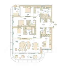 В продаже — четырехкомнатная квартира, общей площадью 121,79 кв. м. Квартира расположена на втором этаже девятиэтажного корпуса Оптимум в квартале В16 нового района СберСити, который строит Сбер.