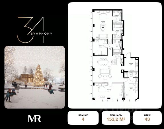 Дом сдан. Ключи в день покупки! В продаже 4-комнатная квартира площадью 132.60 м² с предчистовой отделкой на 49 этаже 49 этажного дома в корпусе Кристал. ЖК Симфония 34 - концептуально новый жилой комплекс премиум-класса с подземной парковкой, состоит из четырех башен высотой 36 - 54 этажа. Квартиры сдаются с базовой (предчистовой) отделкой MR BASE или дизайнерской чистовой отделкой MR READY. Высота потолков 3 - 6 метров, окна высотой до 2,6 м. Более 100 кладовых в подземной части ЖК и более 500 на этажах. Безопасность - Система контроля входа на территорию комплекса, биометрия - Система автоматического водяного пожаротушения и противопожарного водопровода, система пожарной вентиляции - Доступ на парковку при помощи системы распознавания автомобильных номеров, карточка для контроля доступа резидентов - Система видеонаблюдения - Круглосуточная связь через приложение, телефон, голосовые сообщения с охраной, консьержем, call-центр. Расположение Пешком - 6 минут до метро "Дмитровская" - 15 минут до Тимирязевского парка На машине - 5 минут до Савеловского вокзала и Аэроэкспресса в Шереметьево - 10 минут до Москва-Сити и Садового кольца Благоустройство - 70% территории отведены под зеленые насаждения и ландшафтный дизайн - Приватный Японский сад - Детские площадки с зонированием по возрасту - Clubhouse для резидентов - Wellness & SPA - Зона для пикника, зона с гамаками - Центральное лобби, ресторан, коммерческие помещения - Дополнительный вход/выход на территорию комплекса Окружение - В 10 минутах от Symphony 34 находится дизайн-завод Flacon, где регулярно проходят культурно-образовательные и развлекательные мероприятия - Тимирязевский парк расположен в 850 м. Площадь парка 232 га - Рядом расположен парк "Дубки", площадью 16,5 га. - В 15 минутах расположен Хлебозавод 9. Здесь находятся шоурумы брендов, кафе разных кухонь мира, образовательные проекты и площадки для мероприятиКомпания MR предлагает своим клиентам специальные условия приобретения квартир в рамках программ ипотечного кредитования от банков-партнеров.