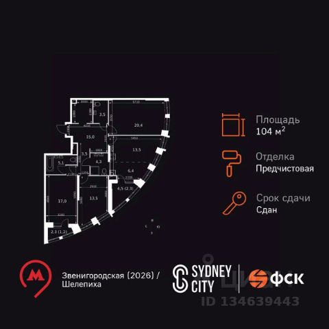 Цена указана с учётом скидки при 100%-й оплате, несубсидированной ипотеке, рассрочке (кроме программы "Рассрочка 0%"). В жилом квартале продаётся 4-комнатная квартира площадью 74.60 кв.м white box. Квартира расположена на 22 этаже 48 этажного корпуса 1 в жилом комплексе комфорт класса Левел Звенигородская (компания Level Group/Левел групп). Отличная транспортная доступность - 5 мин. пешком до метро "Звенигородская" (откроется к окончанию строительства); - 18 мин. пешком до станции МЦК "Хорошёво" и станции БКЛ "Народное ополчение"; - 4 мин. на авто до ТТК; - 8 мин. на авто до Садового кольца; - 15 мин. на авто до Кремля. Продуманный архитектурный проект - Концепция от студии Станислава Михаловского, в основу которой легло единение природы и города; - Двухкамерные стеклопакеты в окнах, алюминиевый и ПВХ профиль - в квартирах тепло зимой и прохладно летом; - С верхних этажей откроются панорамные виды на город, Москву-реку, "Москва-Сити" и Москворецкий парк; - Лобби со всеми удобствами: окна в пол, высокие потолки до 4,7 м, лаунж-зоны, колясочные, гостевые санузлы и мойки для лап животных; - Централизованные водонагреватели гарантируют круглогодичную подачу горячей воды в каждую квартиру. Благоустройство Концепция благоустройства разработана совместно с бюро UNK landscape. Высота башен приближается к 200 метрам - они словно касаются неба. Небесный простор проецируется на территорию двора с помощью подсветки, визуально увеличивая пространство и отражаясь в авторских элементах архитектуры. На территории площадью 0,45 га расположатся: - "Облако событий" - место встреч и общения; - "Облако спорта" - всё для поддержания себя в форме; - "Облако принятия решений" - пространство для работы на свежем воздухе; - "Облако спокойствия" - для отдыха в тишине природы; - "Облако игр" - площадки для подростков и самых маленьких. Инфраструктура В жилом комплексе откроется 21 коммерческое помещение: продуктовые лавки, кафе, салоны красоты, службы доставки и творческие студии. Этап 1 включает строительство двухуровневого подземного паркинга. Всего здесь расположится 351 машино-место, включая семейные места, и 264 кладовых помещения. В распоряжении жителей развитая инфраструктура района: 15 супермаркетов, 5 спортивных объектов, 9 медучреждений, 7 детских садов, 4 школы, 3 благоустроенных парка - всё в шаговой доступности. Инженерия Комфортное перемещение внутри домов будут обеспечивать надёжные лифты с доступом в паркинг с жилых этажей. В каждом корпусе предусмотрено до шести кабин, включая сервисные лифты. Попасть на территорию комплекса можно только по единому ключу доступа. Видеонаблюдение установлено на входах в подъезды, в лобби, в общих зонах, на въезде в паркинг. Гости смогут связаться с жителями дома через входные видеопанели, а управлять доступом на территорию можно через видеодомофон или приложение на телефоне. Продам 4-комнатную квартиру от застройщика в районе Хорошево-Мневники в Москве.