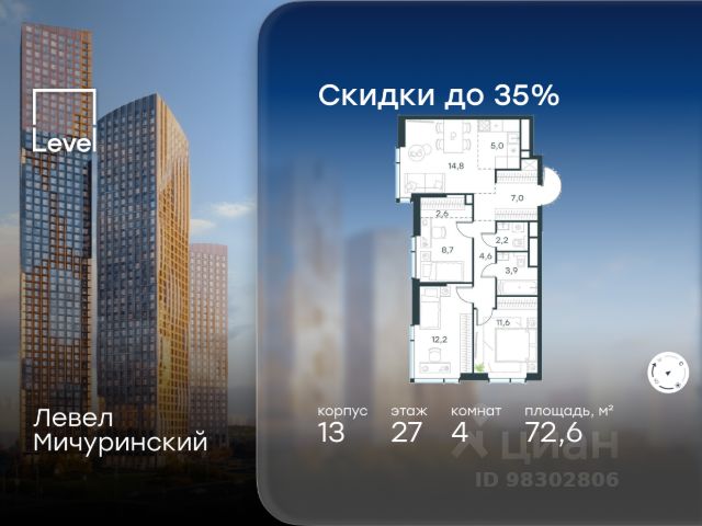 • ✓ В базе Циан 35 4-комнатных квартир от застройщика рядом с метро Аминьевская (Калужско-Нижегородский диаметр (МЦД-4))