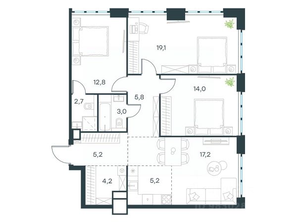 Цена указана с учётом скидки при 100%-й оплате, несубсидированной ипотеке, рассрочке (кроме программы "Рассрочка 0%"). В северной части района Печатники продается 4-комнатная квартира площадью 92.00 кв.м без отделки. Квартира расположена на 4 этаже 20-этажного корпуса 12 в жилом комплексе комфорт-класса Левел Южнопортовая (компания Level Group/Левел групп). Отличная транспортная доступность: - 10 мин. пешком до станции метро "Кожуховская"; - 20 мин. пешком до станции МЦК "Дубровка"; - 3 мин. на авто до ТТК; - 13 мин. на авто до Садового кольца; - 15 мин. на авто до Бульварного кольца. Продуманный архитектурный проект: - авторская архитектура от бюро СПИЧ; - уникальные виды на реку, парки и достопримечательности города; - высота потолков в квартирах до 6 м; - окна высотой до 1,87 м с высоким коэффициентом сопротивления теплоотдаче. Расположение: Жилой комплекс Левел Южнопортовая строится в северной части района Печатники - самой приближенной к центру. Здесь будет сформирован новый район "Южный порт", где построят крупный жилой и общественно-деловой центр, аналогичный Москва-Сити. В течение 10-12 лет в этом месте появятся не только жилые дома, но и развитая инфраструктура для жизни и работы. А еще совсем рядом находится набережная Москвы-реки, где планируется построить причалы для речных трамвайчиков и канатную дорогу. Уже сейчас вокруг жилого комплекса работают десятки магазинов и торговых центров, рядом расположено 6 парков, среди которых музей-заповедник "Коломенское". В 10 минутах пешком - 2 муниципальных и 2 частных детских сада, 7 общеобразовательных школ. Внутренняя инфраструктура: Для отдыха жителей в каждом корпусе предусмотрено лобби, оснащенное местами для отдыха, гостевыми санузлами и лапомойками, а в отдельных корпусах - камином. За счёт больших окон и высоких потолков пространства будут наполнены воздухом и светом. На первых этажах жилого комплекса откроются магазины, салоны красоты, фитнес-центр. Для детей строятся собственные детский сад и школа. Благоустройство: Внутренний двор комплекса разработан совместно с бюро GAFA. Основная идея - создать аналог Центрального парка в Нью-Йорке, гармонично сочетая высотные здания и большое изолированное парковое пространство. Вся площадь двора-парка будет огорожена и составит более 2 га, из которых 45% - озеленение. Одним из самых важных ландшафтных элементов здесь станет небольшая речка, наполняющаяся во время дождя. Вокруг неё появится сеть из островов, внутри которых расположатся тематические зоны спорта и отдыха. Технологии и инженерия: - автоматическая передача в управляющую компанию показаний квартирных счётчиков; - телефонная связь, телевидение и интернет на базе оптической мультисервисной сети; - гостевой вайфай в лобби и на территории двора; - единый ключ доступа для входа на территорию комплекса.