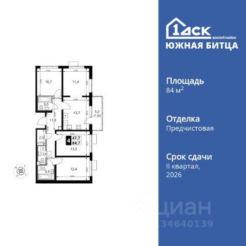 Прямая продажа от застройщика! Семейный жилой район класса Комфорт Плюс Продаётся 4-к квартира номер 495 общей площадью 101.2 кв.м. на 20-м этаже 23 этажного здания. Отделка Whitebox. Цена с учётом скидки. Особенности квартиры: - Увеличенное количество окон - дополнительное освещение и свежий воздух. - Гостевой санузел - комфорт и удобство для ваших гостей. - Душ помимо ванной - дополнительное удобство для вашей семьи. - Раздельный санузел - больше удобства для всех членов семьи. - Просторная кухня - место для семейных ужинов и кулинарных экспериментов. - Гардеробная - удобство для хранения и организации вещей. - Ниша под шкаф - компактное и удобное место для вещей. - Лоджия - уютное место для отдыха и тишины. - Панорамное остекление лоджии - открывает вид на окружающий мир. Квартира с предчистовой отделкой (White box). Вам не придется заниматься черновыми и трудоёмкими работы, а чистовую отделку и дизайн - сделайте на свой вкус. Информация о комплексе: Сочетание свободного перемещения по внутреннней территории без машин и ощущения абсолютной безопасности благодаря надежным ограждениям - вот что отличает ЖК Южная Битца. На территории комплекса созданы все условия как для активного образа жизни, так и для спокойного времяпрепровождения. Свободно перемещайтесь по внутренней территории в безбарьерной среде! Продуманное зонирование во дворах позволяет отделить тихие зоны для родителей со спящими младенцами и тех, кто хочет почитать на свежем воздухе, от шумных игровых зон. Игровые зоны учитывают возраст детей. Площадки для детей старшего возраста вынесены за пределы дворов. Ощущение уютного дома должно начинаться с подъезда. Мы постарались предусмотреть все нюансы, чтобы наши лифты отвечали самым строгим современным требованиям. А наличие кладовых позволит вам поддерживать идеальный порядок и уют в вашей квартире! Транспортная доступность: В 3 км от МКАД в нескольких минутах езды до трех станций метро: Аннино, Бульвар Дмитрия Донского, улица Старокочаловская и станции МЦД2 - жд Бутово. Внутренняя инфраструктура: Для жителей жилого района "Южная Битца" доступна развитая инфраструктура близлежащих московских районов Чертаново, Южное, Бирюлёво Западное, Северное Бутово и Южное Бутово. Множество образовательных учреждений, объекты здравоохранения, торговые и развлекательные центры, кинотеатры, кафе, рестораны, парки. Купить 4-комнатную квартиру от застройщика рядом с метро Лесопарковая.