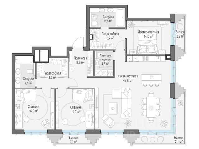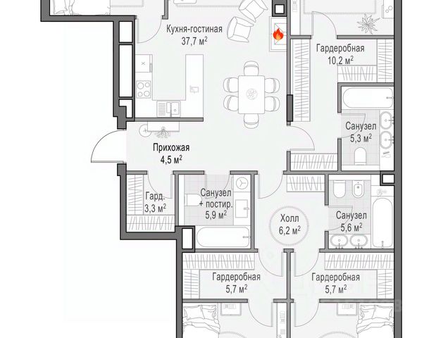 Продается квартира с премиальной отделкой на 3-м этаже общей площадью 495,9 кв.м. с 4-мя спальнями и кухней-гостиной. О жилом комлексе Компания Vesper представляет проект "Левенсон" в исключительной локации — на Патриарших прудах. Проект собирает комбинацию из легендарных исторических зданий типографии поставщика императорского двора Александра Левенсона и объектов современной архитектуры. Новый проект Vesper создан для ценителей подлинных исторических особняков, наполненных совершенными технологиями для создания абсолютного уровня комфорта и эстетики жизни. Клубный дом "Левенсон" объединяет сразу несколько форматов жилой недвижимости, отвечающих самым высоким запросам: современный дом, два исторических здания, частная резиденция. В проекте представлены квартиры и апартаменты с патио, таунхаусы, пентхаусы с террасами. О застройщике Девелопер проекта Vesper специализируется в премиальном сегменте клубной жилой недвижимости. Портфель компании включает 22 проекта в Москве и странах Европы. Актуальные архитектурные проекты, индивидуальный дизайн, передовые технологии, качественные материалы и лучшие мировые практики воплощены в каждом доме компании. Расположение и транспортная доступность Расположение проекта в районе Патриарших прудов позволит резидентам чередовать яркие впечатления от динамичной жизни в мегаполисе с комфортным отдыхом в уединении. Лучшие рестораны высокой кухни, кафе, театры, выставочные залы и бутики здесь соседствуют с тихими переулками и скверами. Архитектура Архитектурная концепция от бюро "Цимайло, Ляшенко и партнеры" гармонично дополняет шедевры модерна новыми формами и материалами. Все квартиры предлагаются с высококачественной отделкой натуральными материалами, оборудованными кухнями и ванными комнатами. Комфорт жизни резидентов будут обеспечивать шумопоглощающие окна, многоуровневая система очистки воды, технология "умный дом" и система очистки воздуха. Инфраструктура Вся территория резиденций "Левенсон" объединена ландшафтным дизайном, выполненным в изящных пропорциях клубного пространства. Благодаря смене архитектурных эпох между зданиями сформировалось несколько камерных пространств, каждое из которых архитекторы бюро Basis представили в виде отдельной комнаты. Технические детали проекта: — Инновационная система микроклимата. — Приточно-вытяжная вентиляция с подготовкой и увлажнением воздуха. — Система контроля и управления доступом, видеонаблюдение. — Служба ресепшн. Техническая служба эксплуатации и обслуживания здания. — Многоуровневая система очистки воды. — Бесперебойное обеспечение горячей водой. — Окна с повышенным уровнем шумоизоляции.