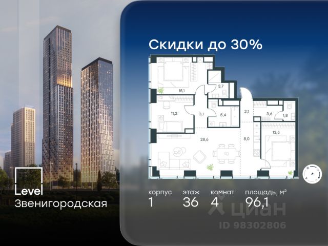 Успейте стать частью уникального проекта премиум-класса на западе Москвы! В продаже квартиры: 1-комнатные от 28,1 м²; 2-комнатные от 61,2 м²; 3-комнатные от 86,6 м²; 4-комнатные от 110,7 м². Первый взнос от 30%! Рассрочка на 2 года без переплат! Крылатское 33 это премиальный жилой комплекс от специализированного застройщика ООО "Сияние". Самый высокий небоскрёб в районе, достигающий отметки в 150 метров и малоэтажный клубный формат высотой от 42 метров на приватной территории площадью 1,4 га. Великолепные виды на излучину Москва-реки, Живописный мост и урбанистический облик города. Эксклюзивные форматы квартир с панорамным остеклением и патио-террасами. Двухуровневый паркинг на 271м/м, премиальные входные группы, ресторан высокой кухни, детский сад и эко-маркет на территории комплекса. Эксклюзивные преимущества: доступ к wellness-центру, коворкингу и клубной гостиной только для резидентов. Над проектом работали именитые российские архитектурные бюро: архитектор проекта бюро "Остоженка", планировочные решения от бюро Александры Федоровой. Расположение Пешком: 5-7 минут - до парка Звезд, Крылатского парка и набережной Москвы-реки; 15 минут - до метро Крылатское Арбатско-Покровской линии; 15 минут - до пристани Крылатская. На автомобиле: 10 минут - до Третьего транспортного кольца; 15 минут - до Садового кольца и Москва- Сити; 20-30 минут - до Аэропорта Внуково; 30-40 минут - до Аэропорта Шереметьево. В 300 метрах от комплекса - удобная транспортная развязка с проспектом Маршала Жукова, обеспечивающая легкий доступ к ключевым магистралям. Благоустройство: Просторная общественная гостиная; Коворкинг с кофе-баром, комфортные переговорные зоны с быстрым wi-fi, зарядными устройствами и библиотекой; Пространство friends lab для организации клубных мероприятий; Wellness-центр с фитнес-залом и массажными кабинетами; Ресторан высокой кухни; Частный детский сад; Детское кафе; Современный детский playhub; Спортивные площадки; Гипоаллергенный сад, безопасные водные пространства, декоративные пруды и сухие фонтаны; Высокоскоростные бесшумные лифты; Разделение зон для резидентов квартала и сервисного обслуживания. Окружение: - парки: Крылатские холмы, природно-исторический парк Москворецкий, Серебряный Бор; - учебные заведения: 5 образовательных комплексов, в которые входят 15 детских садов и 12 школьных корпусов. В удобной транспортной доступности гимназия им. Е. М. Примакова и международный лицей The International School of Moscow; - уникальные спортивные сооружения: гребной канал "Крылатское", легендарный велотрек "Крылатское", "Лата Трэк" для горнолыжников и сноубордистов, ледовый дворец "Крылатское"; - единственный в Москве парк развлечений под открытым небом, включающий более 70 вариантов досуга для любого возраста и времени года. Срок сдачи проекта: 2 квартал 2027 года. Финансирование и эскроу-счет обеспечены банком МКБ.