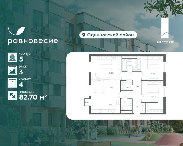 Указанная акционная стоимость доступна при 100% оплате или ипотеке без субсидирования. Цена действует до 23.03.2026 23:59:00. Стоимость без акции 21948580. Продаётся квартира с 4 комнатами общей площадью 82.70 кв. метров на 3 этаже жилого квартала комфорт-класса "Равновесие". На территории комплекса будет возведен детский сад на 360 мест, а на первых этажах жилых домов откроются кафе, магазины и все необходимое для удобства жителей. Локация "Равновесия" выделяется среди других пригородных ЖК разнообразием быстрых маршрутов до Москвы. Для автомобилистов преимуществом станут удобные выезды на Можайское шоссе, Рублёво-Успенское шоссе, Минское шоссе с платной трассой и другие. Также в пешей доступности находятся две ж/д станции — "Жаворонки" и "Здравница". Дорога на электропоезде до делового центра "Москва-Сити" составит всего 35 минут. Особенности ЖК: - Малоэтажная застройка: 4-6 этажей; - Благоустроенный пешеходный бульвар; - Пространства для отдыха и спорта; - Квартиры с террасами на последних этажах; - Квартиры с отдельным входом на первых этажах; - Внутренняя территория квартала свободна от машин; - Безбарьерная среда; - Помещения для хранения детских колясок и спортивного инвентаря.