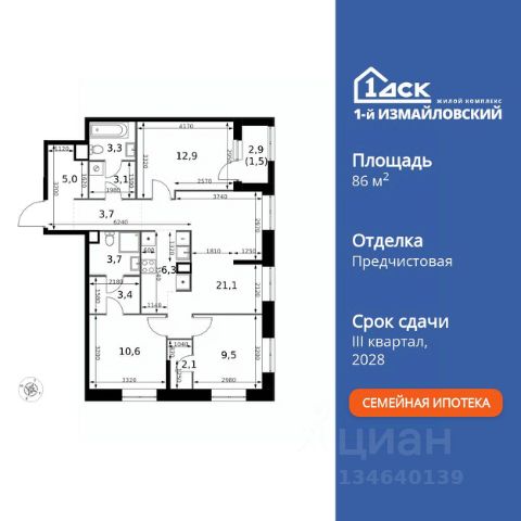 • ИПОТЕКА 10% ДЛЯ ВСЕХ БЕЗ НАЦЕНОК • ДОСТУПНО ПО СЕМЕЙНОЙ ИПОТЕКЕ Прямая продажа от застройщика! Жилой Комплекс Комфорт класса. Продаётся 4-к квартира номер 420 общей площадью 85.3 кв.м. на 2-м этаже 32 этажного здания. Без отделки. Цена с учётом скидки. Особенности квартиры: - Мастер-зона с санузлом и гардеробной. Всё для вашего комфорта и удобства, включая личный санузел и гардероб. - Просторная спальня, в которой можно разместить большую кровать. - Угловая планировка - больше пространства для ваших идей. - Увеличенное количество окон - дополнительное освещение и свежий воздух. - Гостевой санузел - комфорт и удобство для ваших гостей. - Душ помимо ванной - дополнительное удобство для вашей семьи. - Постирочная - организуйте пространство для стирки и сушки вещей. - Евроформат - просторное и удобное жилье с отличной планировкой. - Место для игры/занятия спортом - идеальное пространство для активных детей. - Можно оборудовать 2 или более рабочих места - пространство для нескольких человек. - Возможность добавить спальное место - дополнительный комфорт для гостей. - Проходная кухня-гостиная - идеальное пространство для общения и готовки. - Гардеробная - удобство для хранения и организации вещей. - Ниша под шкаф - компактное и удобное место для вещей. - Лоджия - уютное место для отдыха и тишины. Информация о комплексе: Современный архитектурный проект "1-й Измайловский" - идеальное место для проживания, расположенное в восточной части Москвы в окружении 14 000 гектаров леса. Комплекс пронизан атмосферой здорового образа жизни и благополучия. Сиреневый сад и близлежащие лесопарки - это места, где можно насладиться лыжными прогулками зимой и тонизирующими пробежками летом. Расположенный между Щелковским шоссе и Амурской улицей, "1-й Измайловский" осмысляет себя не столько через близость к городским точкам притяжения, сколько через соседство с зелеными пространствами и спортивными объектами. Он отгорожен от шоссе застройкой первой линии и собственными садами здоровья. В его окнах - изумрудное море парка "Лосиный остров" и густые кроны окрестных дворов. В его графике - занятия спортом и прогулки в Измайлове. Транспортная доступность: Не более 2,5 км до станций метро "Щёлковская" и "Черкизовская" и МЦК "Локомотив". Щёлковское шоссе соединяет квартал с Северо-восточной хордой и МКАД, Центральным автовокзалом и Восточным железнодорожным вокзалом. Две автобусные остановки в паре минут ходьбы и 11 маршрутов общественного транспорта. На автомобиле 3 минуты до СВХ 12 минут до ТТК 15 минут до Садового кольца Внутренняя инфраструктура: Комплекс находится в исторически сложившемся районе Москвы с хорошим качеством и плотностью инфраструктуры. Торговые центры и сетевые магазины -6 детских садов, включая собственный детский сад на 125 мест -3 школы, включая собственную школу -Поликлиники и медицинские центры -Парки и зоны отдыха Расположение архитектурного проекта создает все условия для тех, кто стремится к здо