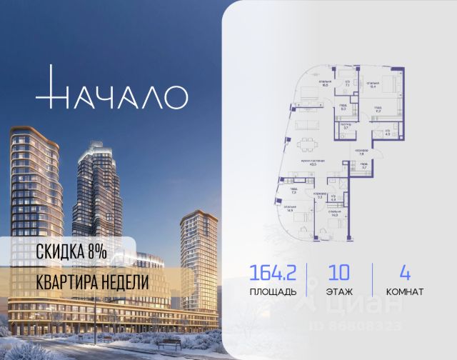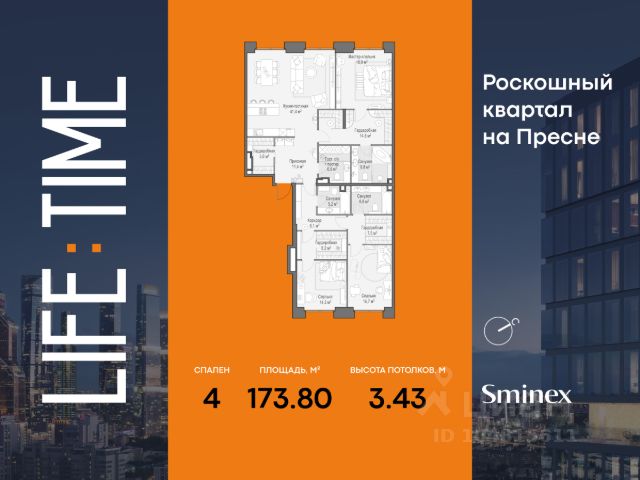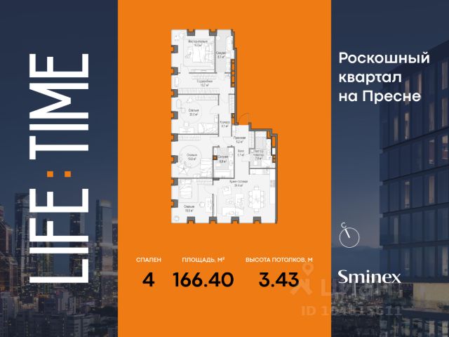 Продаётся 4 - комнатный пентхаус в готовом доме (Корпус 4.1), общей площадью 359.5 кв.м., на 21 этаже. О жилом комлексе Жилой квартал Lucky - это переосмысление и регенерация общественно-делового кластера площадью более 4.5 гектаров в центре Москвы. О застройщике Девелопер проекта Vesper специализируется в премиальном сегменте клубной жилой недвижимости. Портфель компании включает 22 проекта в Москве и странах Европы. Актуальные архитектурные проекты, индивидуальный дизайн, передовые технологии, качественные материалы и лучшие мировые практики воплощены в каждом доме компании. Расположение и транспортная доступность Квартал расположен на пересечении улиц 2-ая Звенигородская и Костикова, в 200 метрах от метро "Улица 1905 года". В непосредственной близости от парков, Москвы- реки, Сити и Садового кольца формируется идеальная среда для семейного проживания в мегаполисе. Архитектура Визуально квартал разделен на две части: верхний город с новыми высотными жилыми домами и нижний город с общественным пространством для инфраструктуры, где располагается новый социокультурный кластер площадью около 10 000 кв. м. Верхний город состоит из восьми жилых домов: семь 21-этажных башен и одно здание высотой 15 этажей. В восьми новых домах расположены 618 квартир. На каждом этаже 3-4 квартиры, большая часть которых имеет ориентацию на 2-3 стороны света. Из панорамных окон открываются виды на набережную Москва-реки, Сити и близлежащие парки. Знаковая архитектура, продуманные планировочные решения, изысканная отделка, инновационные инженерные решения воплощены в квартале Lucky. Инфраструктура В квартале представлена инфраструктура для всей семьи: парки и скверы, билингвальный детский сад La Berezka, собственный 600 м. игровой парк для детей, фитнес с подогреваемым бассейном на крыше, рестораны, кафе и магазины органических продуктов. В шаговой доступности от квартала расположены лучшие рейтинговые школы.