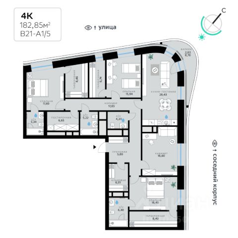 Продаётся 4-комнатная квартира 113 м². В жилом районе ALIA на 9-м этаже 11-этажного дома. Жилой район ALIA — это дома бизнес-класса у слияния Москвы-реки и Сходни. ALIA находится в Покровском-Стрешневе, экологически чистом районе на престижном северо-западе столицы. Район возводится на бывшей территории Тушинского аэрополя, где никогда не было промышленного производства. ALIA — это район разностороннего развития, спроектированный по принципу WORK.LIVE.PLAY.LEARN. Это "15-минутный город", где вся необходимая для комфортной жизни инфраструктура — на расстоянии приятной прогулки. У района удобное расположение: отсюда меньше 10 минут пешком до станций метро "Спартак" и "Тушинская" и всего полчаса на автомобиле до центра города или аэропорта Шереметьево. Архитектурную концепцию ALIA разработало бюро SOM (Skidmore, Owings & Merrill), авторы знаменитой "Бурдж-Халифа". В ALIA больше 140 планировочных решений, среди которых — редкие для Москвы форматы: квартиры с окном в ванной, пентхаус, сити-юниты и таунхаусы. Почти половина территории района отдана под благоустройство. В ALIA три парка: Линейный парк с кафе и магазинами, Центральный парк с амфитеатром, сухим фонтаном и большим плейхабом для детей всех возрастов и Прибрежный парк на собственной набережной, одной из самых длинных в Москве. В каждом урбан-блоке — закрытый внутренний двор с гипоаллергенными растениями и детской площадкой. В лобби каждого жилого корпуса в ALIA оборудована зона ожидания, колясочная, гостевой санузел и лапомойка для домашних животных. За стойкой ресепшена резидентов и их гостей встречает консьерж. Центральное лобби урбан-блока — это стильное общественное пространство с коворкингом, лаундж-зоной и кофе-пойнтом. Это "вторая гостиная" жителей урбан-блока и одно из мест, где формируется комьюнити ALIA. Два ключевых объекта инфраструктуры в ALIA — это спорткомплекс "Чкалов Арена", где представлены 25 видов спорта, и самый большой в стране бизнес-парк класса A, благодаря которому району обеспечено быстрое развитие.