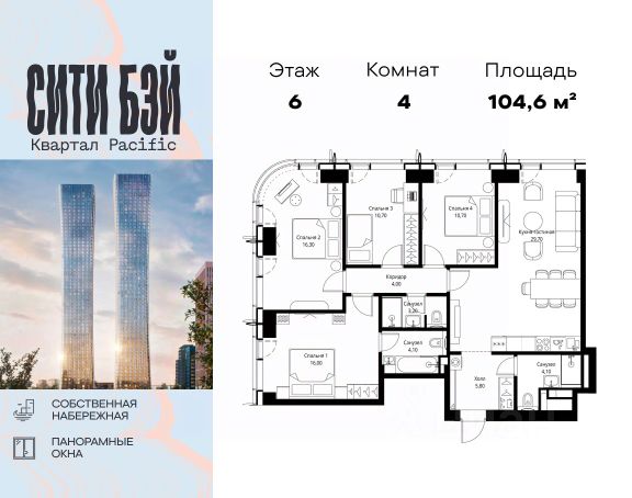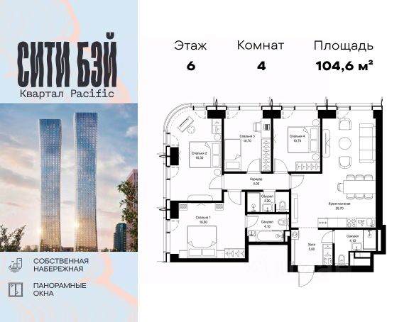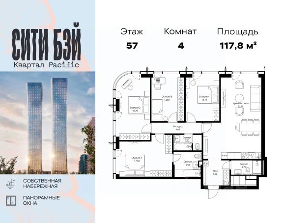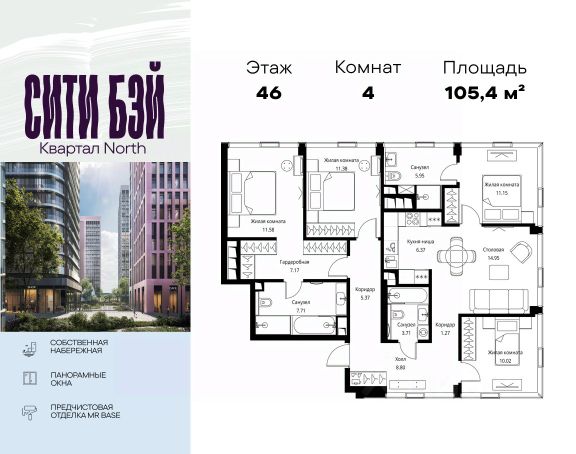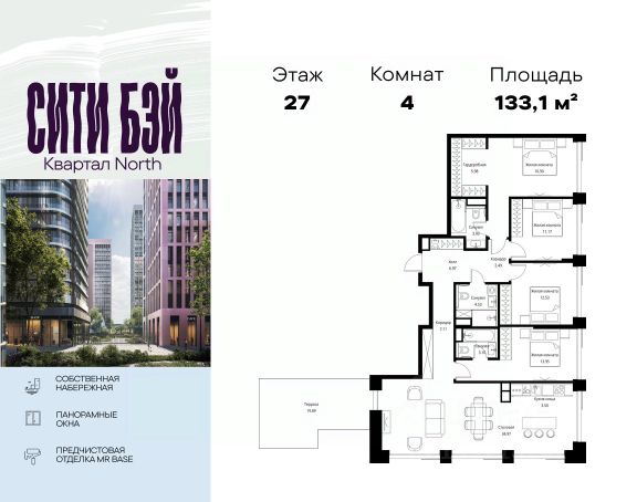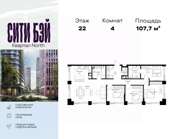 Продаётся 4-комнатная квартира 113 м². В жилом районе ALIA на 9-м этаже 11-этажного дома. Жилой район ALIA — это дома бизнес-класса у слияния Москвы-реки и Сходни. ALIA находится в Покровском-Стрешневе, экологически чистом районе на престижном северо-западе столицы. Район возводится на бывшей территории Тушинского аэрополя, где никогда не было промышленного производства. ALIA — это район разностороннего развития, спроектированный по принципу WORK.LIVE.PLAY.LEARN. Это "15-минутный город", где вся необходимая для комфортной жизни инфраструктура — на расстоянии приятной прогулки. У района удобное расположение: отсюда меньше 10 минут пешком до станций метро "Спартак" и "Тушинская" и всего полчаса на автомобиле до центра города или аэропорта Шереметьево. Архитектурную концепцию ALIA разработало бюро SOM (Skidmore, Owings & Merrill), авторы знаменитой "Бурдж-Халифа". В ALIA больше 140 планировочных решений, среди которых — редкие для Москвы форматы: квартиры с окном в ванной, пентхаус, сити-юниты и таунхаусы. Почти половина территории района отдана под благоустройство. В ALIA три парка: Линейный парк с кафе и магазинами, Центральный парк с амфитеатром, сухим фонтаном и большим плейхабом для детей всех возрастов и Прибрежный парк на собственной набережной, одной из самых длинных в Москве. В каждом урбан-блоке — закрытый внутренний двор с гипоаллергенными растениями и детской площадкой. В лобби каждого жилого корпуса в ALIA оборудована зона ожидания, колясочная, гостевой санузел и лапомойка для домашних животных. За стойкой ресепшена резидентов и их гостей встречает консьерж. Центральное лобби урбан-блока — это стильное общественное пространство с коворкингом, лаундж-зоной и кофе-пойнтом. Это "вторая гостиная" жителей урбан-блока и одно из мест, где формируется комьюнити ALIA. Два ключевых объекта инфраструктуры в ALIA — это спорткомплекс "Чкалов Арена", где представлены 25 видов спорта, и самый большой в стране бизнес-парк класса A, благодаря которому району обеспечено быстрое развитие.