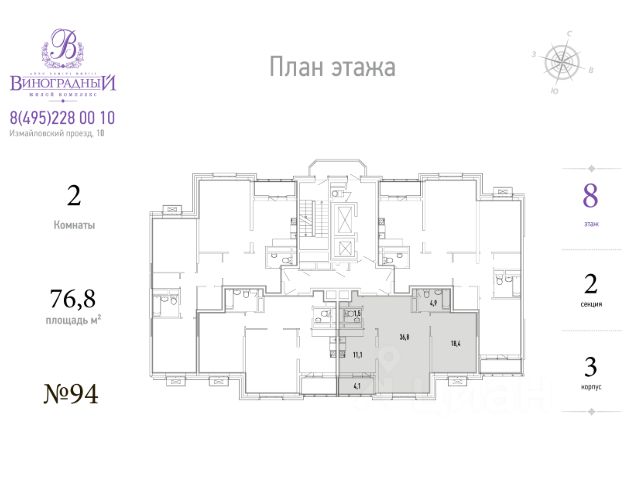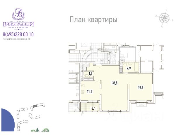 Удобная транспортная доступность, метро Электрозаводская в 9 минутах пешком. Рядом остановки общественного транспорта. На авто удобно добираться в любую точку Москвы.