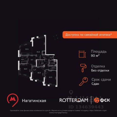 Прямая продажа от застройщика! Жилой Комплекс бизнес-класса. Продаётся 4-к квартира номер 299 общей площадью 90.5 кв.м. на 15-м этаже 28 этажного здания. Без отделки. Цена с учётом скидки. Особенности квартиры: - Мастер-зона с санузлом и гардеробной. Всё для вашего комфорта и удобства, включая личный санузел и гардероб. - Угловая планировка - больше пространства для ваших идей. - Мало квартир на этаже - уединение и тишина. - Окно в ванной - натуральное освещение для уюта и комфорта. - Увеличенное количество окон - дополнительное освещение и свежий воздух. - Окно над кухонным фронтом - светлое и удобное пространство для готовки. - Угловое остекление - свет и воздушность в каждой комнате. - Гостевой санузел - комфорт и удобство для ваших гостей. - Постирочная - организуйте пространство для стирки и сушки вещей. - Гибкая планировка - создайте пространство по своему вкусу. - Место для игры/занятия спортом - идеальное пространство для активных детей. - Просторная мягкая зона - комфорт и уют для отдыха всей семьи. - Линейная кухня - функциональность и практичность в одном решении. - Возможность добавить спальное место - дополнительный комфорт для гостей. - Гардеробная - удобство для хранения и организации вещей. - Просторная гардеробная - место для вашего личного пространства. Информация о комплексе: В ЖК Роттердам отличное расположение, которое позволит вам выбирать свой сегодняшняшний маршрут и транспорт исходя из настроения, целей и погоды. Отсюда удобно добираться в центр как на метро станция находится в пешей доступности, так и на автомобиле. Варшавское шоссе связывает жилой комплекс с ТТК, а через Люсиновскую и Мытную улицы с Садовым кольцом. В качестве альтернативного маршрута можно использовать Нагатинскую набережную: дорога вдоль Москва-реки приведет к Кремлю и Павелецкому вокзалу. Для неспешной поездки предусмотрены трамвайные маршруты, а в теплое время года веломаршруты вдоль реки. Транспортная доступность: Всего в 5 минутах пешком до метро Нагатинская и 8 минутах от МЦК Верхние Котлы. Рядом Аэроэкспресс до метро Домодево. До ТТК 2,2 км и 4,9 км до Садового кольца. Внутренняя инфраструктура: Если вы ищете идеальный баланс между отдыхом и работой и обладаете активной жизненной позицией - ЖК Роттердам вам понравится. В ЖК: зоны коворкинга, плейхаб и детские площадки для отдыха всей семьей. Близость к деловому центру Москвы, в окружении 5 парков, рядом спортивные и развлекательные центры Если вы любите живописные виды и долгие прогулки - ЖК Роттердам - отличный вариант для вас, так как он расположен прямо на Нагатинской набережной с выходом на Москву реку! В ЖК Роттердам соблюден баланс между высоткой и малоэтатажным зданием, которое не потеряло ощущение уюта и не создает впечатление городских джунглей Если вы любите быть на высоте и без ограничений - выбирайте верхние этажи Для тех, кто ценит комфорт и собственное время Для тех, кто ценит комфорт и личное пространство Для тех, кому важен комфорт, Продается 4-комнатная квартира от застройщика на шоссе Варшавское в Москве.
