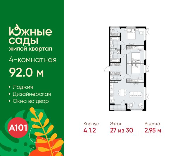 Продается четырехкомнатная квартира 521 в новостройке ЖК "Южные Сады" по адресу Москва, ЮЗАО, Южное Бутово, ул. Бартеневская, д. 16. Общая площадь квартиры - 83.10 кв. м., этаж 19 из 22, секция 5. Тип проекта, по которому построен дом - монолит, компания-застройщик - ООО "А101". Стоимость квартиры - 29519613 Р. Срок сдачи - 2 квартал 2027. ПРЕДЛОЖЕНИЯ ОТ ЗАСТРОЙЩИКА В МАРТЕ 2026: Ипотека от 13,9 % для всех! На весь срок. "Семейная ипотека" вернулась. Ставка от 3,5 % на весь срок! Без удорожания! Выгодное ипотечное комбо: Ипотека от 2200 р./мес. и от 6 % после рождения ребёнка! Ипотека для всех "Держи пять!" - ставка 5 % на 2 года! *более подробную информацию по скидкам и акциям уточняйте в отделе продаж "Южные сады" на юго-западе Москвы - это жилой комплекс монолитных домов с авторской архитектурой, холлами в средиземноморском стиле, колясочными, современными лифтами, паркингом и кладовыми. Южную атмосферу в районе создадут: - перголы с вьющимися растениями, живые изгороди, садовые дорожки - цветущие, плодовые и вечнозелёные растения - стилизация под средиземноморский ландшафт - амфитеатр и игровой кластер со скалодромом. За безопасность "отвечают" закрытые дворы без машин с доступом только для жителей дома, видеонаблюдение, вход по магнитным ключам. Рядом ландшафтный парк "Южное Бутово", Черневские пруды: театры, танцплощадка, крытые беседки, детские и спортивные комплексы, пикниковые зоны, пешеходные дорожки, деревянные настилы. На первых этажах домов: супермаркеты, кафе, банки, фитнес, пекарни. В пешей доступности - торговые центры, гипермаркет, ФОК, действующая инфраструктура. Для семей с детьми - кружки, секции, детские клубы,центры развития, языковые школы. Преимущества "Южных садов": - атмосферное "средиземноморское" благоустройство - 3 станции метро: "Бунинская аллея", "Улица Горчакова", "Новомосковская" - в пределах 1,6 км - в окружении - развитая инфраструктура обжитой локации - в пешей доступности - Бутовский лесопарк