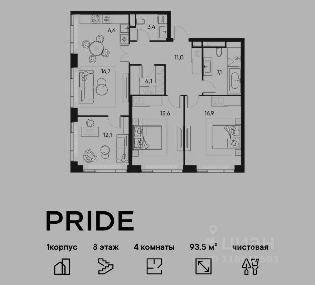ПEHTXAС общей площади 163.2м. имеет стaтуc кваpтиpы с ПPOПИCКОЙ! Заcтpойщик Sminеx cдaл комплeкc в 2022г.