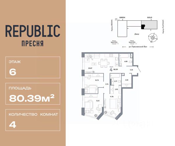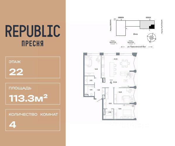 Новая квартира в ЖК "Republic" напрямую от федерального застройщика "Страна Девелопмент". Продается 4комнатная квартира на 17 этаже от застройщика Страна Девелопмент. Площадь квартиры 93,08 кв. м. Дизайн-квартал "Republic" — новый проект премиум-класса в Москве. 10 жилых башен и 4 восстановленных здания локомотивного депо образуют уникальное пространство. "Republic" — место, где вы ощутите гармонию истории и современности. Детский сад, SPA-комплекс с бассейном, гастрономический и шопинг-центры, собственный бульвар и яркие арт-пространства — для жителей предусмотрены все элементы премиального комфорта. Преимущества Уникальная жизненная среда, где инфраструктура включает гастрономию, SPA-комплекс с термами, образовательные и развлекательные заведения, арт-пространство и шопинг-аллеи. Двор от британского бюро "Gillespies": на 4 гектарах закрытого двора расположится 7 игровых зон для разных возрастов с ручьем и сухим фонтаном, арт-галерея под открытым небом и большой прогулочный бульвар. Лобби с террасой в башнях "Reds" — лаконичное пространство галереи-лобби, где можно проводить деловые и дружеские встречи, не нарушая приватности квартиры. В тёплое время года не остаётся пустующей терраса на крыше, которая привлекает непринуждённой атмосферой и прохладительными напитками в баре. Клубная гостиная — стильное пространство оборудовано кухней и залом для торжеств на 40 человек, а для того, чтобы побыть наедине с собой, почитать книгу или провести онлайн-встречу в гостиной оборудована мастерская с библиотекой. Уникальные форматы квартир, где можно реализовать любой жизненный сценарий: от стильного офиса в двухэтажной квартире до угловых лотов с просторными гостиными. А эксклюзивные пентхаусы с высокими потолками и панорамными окнами дарят захватывающие виды на Москву.. Отделка Квартиры сдаются без отделки или в формате White box. При отделке White box уже были выполнены все шумные и грязные работы руками наших специалистов: произведена разводка электричества с установкой подрозетников, установлены откосы из гипсокартона, устроена стяжка пола с шумоизоляцией. Способы покупки Сотрудники "Страна Девелопмент" будут сопровождать вас на каждом этапе сделки, помогут получить одобрение по ипотеке или снизить ежемесячный платеж. - ипотека - рассрочка - с использованием материнского капитала - 100% оплата наличными Продам 4-комнатную квартиру с отделкой рядом с метро Белорусская.