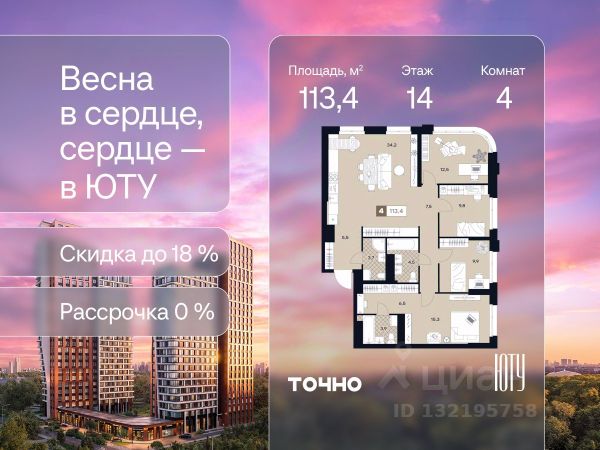 Продаётся 4-комнатная квартира 113 м². В жилом районе Алиа на 10-м этаже 11-этажного дома. Жилой район Алиа — это дома бизнес-класса у слияния Москвы-реки и Сходни. Алиа находится в Покровском-Стрешневе, экологически чистом районе на престижном северо-западе столицы. Район возводится на бывшей территории Тушинского аэрополя, где никогда не было промышленного производства. Алиа — это район разностороннего развития, спроектированный по принципу WORK.LIVE.PLAY.LEARN. Это "15-минутный город", где вся необходимая для комфортной жизни инфраструктура — на расстоянии приятной прогулки. У района удобное расположение: отсюда меньше 10 минут пешком до станций метро "Спартак" и "Тушинская" и всего полчаса на автомобиле до центра города или аэропорта Шереметьево. Архитектурную концепцию Алиа разработало бюро SOM (Skidmore, Owings & Merrill), авторы знаменитой "Бурдж-Халифа". В Алиа больше 140 планировочных решений, среди которых — редкие для Москвы форматы: квартиры с окном в ванной, пентхаус, сити-юниты и таунхаусы. Почти половина территории района отдана под благоустройство. В Алиа три парка: Линейный парк с кафе и магазинами, Центральный парк с амфитеатром, сухим фонтаном и большим плейхабом для детей всех возрастов и Прибрежный парк на собственной набережной, одной из самых длинных в Москве. В каждом урбан-блоке — закрытый внутренний двор с гипоаллергенными растениями и детской площадкой. В лобби каждого жилого корпуса в Алиа оборудована зона ожидания, колясочная, гостевой санузел и лапомойка для домашних животных. За стойкой ресепшена резидентов и их гостей встречает консьерж. Центральное лобби урбан-блока — это стильное общественное пространство с коворкингом, лаундж-зоной и кофе-пойнтом. Это "вторая гостиная" жителей урбан-блока и одно из мест, где формируется комьюнити Алиа. Два ключевых объекта инфраструктуры в Алиа — это спорткомплекс "Чкалов Арена", где представлены 25 видов спорта, и самый большой в стране бизнес-парк класса A, благодаря которому району обеспечено быстрое развитие. Продам 4-комнатную квартиру с отделкой в округе СЗАО в Москве.