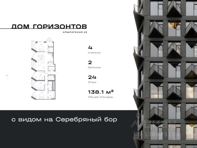 Клубный дом в Крылатском районе уникальный проект для данной локации • Скидки месяца на избранный пул лотов • Рассрочка на выгодных условиях ЛОКАЦИЯ: • Самый экологичный район столицы — более 70% территории Крылатского занимают природные зоны и акватория. • Крылатские Холмы в пешей доступности • 10 минут на автомобиле от Москва-Сити • Удобные выезды на основные магистрали: ТТК, Садовое кольцо ИНФРАСТРУКТУРА РАЙОНА: • Богатая спортивная инфраструктура: велотрек, гребной канал, ледовый дворец, горнолыжная база, теннисные корты и т.д. • Престижные школы и детские сады ДОМ ГОРИЗОНТОВ • 135 квартир, 4 квартиры с террасами, 3 пентхауса • - 2 этажа паркинга с зарядками для электрокаров • Приватная закрытая территория с богатой инфраструктурой для резидентов Квартира видовая с балконом и панорамным остеклением: - Уютная функциональная планировка - Кол-во комнат: 1 - Общая площадь - 52.58 кв.м. - кв.м - 9 этаж 27 этажного дома Вечные виды на зеленые просторы Серебряного Бора и сверкающую ленту Москвы-реки с аркой Живописного моста. ИНФРАСТРУКТУРА УДОБНОЙ ЖИЗНИ: • Круглосуточное видеонаблюдение и контроль доступа • Консьерж-сервис 24/7 • Зарядные станции для электромобилей на подземном паркинге • Индивидуальные келлеры для хранения спортивного инвентаря • Детский физкультурный комплекс с двумя бассейнами Дом Горизонтов — клубное пространство в одном из самых зелёных районов Москвы, где каждая деталь дарит вдохновение и ощущение свободы. Оперативный показ квартиры! Бронирование по телефону 4-комнатная квартира первичка в районе Крылатское в Москве.