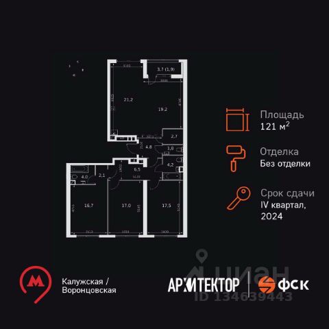 Прямая продажа от застройщика! Жилой Комплекс премиум-класса. Продаётся 4-к квартира номер 570 общей площадью 121.9 кв.м. на 28-м этаже 28 этажного здания. Без отделки. Цена с учётом скидки. Особенности квартиры: 50% лотов - Планировка повышенной комфортности - Живите в квартире сейчас, платите потом - Лидер продаж - Двухуровневый двор без машин - Успей купить до повышения - Скоро ключи! 50% лотов - Идеальная планировка - Живите в квартире сейчас, платите потом - Лидер продаж - Двухуровневый двор без машин - Успей купить до отмены скидок - Скоро ключи! - Мастер-зона с санузлом. Уют и комфорт в одном пространстве. - Распашная планировка - отличное сочетание удобства и свободы. - Увеличенная ширина окна/окон - больше света и визуального простора. - Гостевой санузел - комфорт и удобство для ваших гостей. - Евроформат - просторное и удобное жилье с отличной планировкой. - Место для игры/занятия спортом - идеальное пространство для активных детей. - Можно оборудовать 2 или более рабочих места - пространство для нескольких человек. - Просторная мягкая зона - комфорт и уют для отдыха всей семьи. - Возможность добавить спальное место - дополнительный комфорт для гостей. - Гардеробная - удобство для хранения и организации вещей. - Лоджия - уютное место для отдыха и тишины. Информация о комплексе: Ощущение уютного дома должно начинаться с подъезда. Мы постарались предусмотреть все нюансы, чтобы наши лифты отвечали самым строгим современным требованиям. Вы всегда сможете увидеть, кто звонит в домофон. В каждой квартире подключен базовый пакет Умная квартира забудьте о беспокойстве о протечке; настройте свои сценарии управления техникой и электричеством; общайтесь сУмной квартирой голосом; Можете легко расширить базовый пакет и подключить дополнительные опции и устройства, чтобы из любой точки мира управляй работой бытовых приборов и систем. Наличие кладовых позволит вам поддерживать идеальный порядок и уют в вашей квартире! Под башнями расположился трехуровневый паркинг на 670 машино-мест с прямым доступом из квартир любого подъезда. По периметру паркинга предусмотрена гостевая парковка на 30 мест. Транспортная доступность: До метро "Калужская" - 12 минут пешком, 14 минут (7 км) до ТТК, 9 минут (6 км) до МКАД, 18 минут (11 км) до Садового кольца. В шаговой доступности до Воронцовского парка Внутренняя инфраструктура: В ЖК продуманная, богатая инфраструктура из трех зон. В основной входной группе сконцентрированы все блага современного мегаполиса: супермаркет, ресторан, фитнес-клуб, аптеки, салоны красоты и кофейня. Под шумные детские игры отведен нижний уровень, мы предусмотрели игры как для самых маленьких, так и для деток постарше. Для досуга взрослых есть места для спорта, занятий йогой, шезлонги и деревянные террасы для отдыха. 4-комнатная квартира первичка на улице Академика Волгина в Москве.