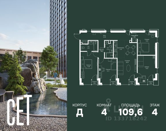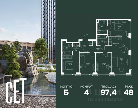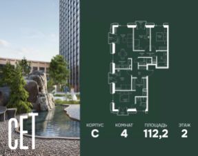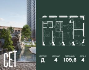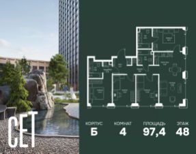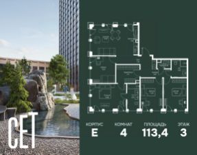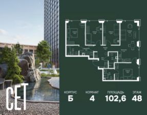 Прямая продажа от застройщика. В ЖК Сет продается 4-комнатная квартира площадью 102.56 м², расположенная в корпусе Б, на 48 этаже 59 этажного дома. Сет имеет стратегически выгодное расположение в ЗАО, в районе с большой историей и блестящим будущим: между природной зоной долины реки Сетунь и Кутузовским проспектом. В рамках возведения первой очереди предусмотрено три корпуса высотой 18, 45 и 59 этажей. На верхних этажах спроектированы общедоступные смотровые площадки с панорамным обзором на центр столицы. Преимущества проекта: • Функциональные планировочные решения • Контроль проникновения через входную дверь • Система управления освещением и температурой в квартире • Система защиты от протечек с функцией перекрытия воды • Вход в подъезд по биометрическим считывателям Face ID • Скоростные лифты • Двухуровневый подземный охраняемый паркинг на 495 машино-мест Застройка Сет включает в себя не только жилые корпуса, но и инфраструктурные объекты. Все необходимое для повседневного комфорта будет расположено в шаговой доступности: • Фитнес-Клуб с бассейном • Ведущая городская школа, детский сад и школа искусств • Центр культуры и досуга • Медицинский центр • Кафе и рестораны Расположение комплекса: Пешком: • Метро "Давыдково" - 17 минут • Парк "Долина реки Сетунь" - 3 минуты • Открытие новых станций метро в шаговой доступности в будущем Инфраструктура: Разнообразить свой день резиденты Веер смогут также проводя больше времени на свежем воздухе. Двор разделен на 4 зоны разных эмоций и действий, которые пересечены и соединены веерными прогулочными маршрутами: • Спортивная площадка устроена в глубине ""Кленовой рощи"" • В ""Чайном домике"" будет создан навес с утеплением для отдыха в любую погоду • Площадки для детей воплотятся в ""Волшебный лес"" с цветами, зеркалами и световым дизайном • ""Центральная площадь"" устроена у водного оазиса живописного пруда. На машине: • "Москва-Сити" - 15 минут • Садовое кольцо - 20 минут • ТЦ "Океания" - 8 минут • ТЦ "Времена года" - 13 минут • Сколково - 12 минут • Гребной канал - 17 минут Компания MR предлагает своим клиентам специальные условия приобретения квартир в рамках программ ипотечного кредитования от банков-партнеров. Купить 4-комнатную квартиру первичка на улице Верейская в Москве.