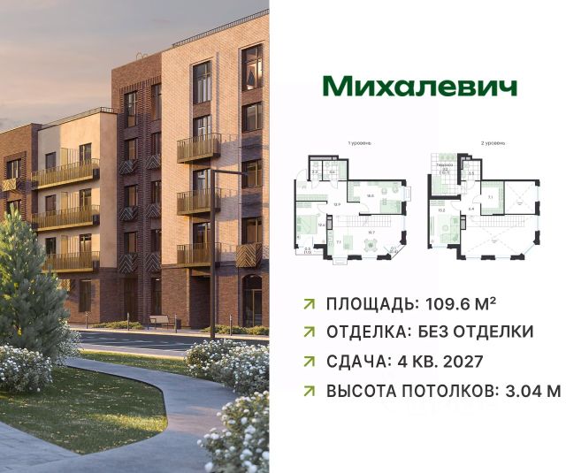 ЖК "Михалевич" — малоэтажный жилой комплекс в стиле современного лофта, где архитектура сочетается с природной гармонией. Квартал расположен в центре города Раменское, всего в 10 минутах пешком от станции МЦД-3 "Ипподром", с развитой транспортной и социальной инфраструктурой. Проект вдохновлен лучшими традициями городской застройки: натуральные материалы, декоративная объемная кладка, авторская архитектурная подсветка фасадов создают атмосферу уюта. Пространство дворов спроектировано без машин, с зонами для игр, спорта и отдыха. В благоустройстве сохранены вековые деревья и планируется создание "лесных гостиных". Планировки — от компактных студий до просторных четырехкомнатных квартир, включая варианты с патио, вторым уровнем и террасами на кровле, гардеробными и мастер-спальнями. В квартирах предусмотрены французские балконы и лоджии, а потолки от 3 метров. Архитектура и стиль: • Малоэтажные корпуса (4 этажа) в стиле современного лофта • Натуральные материалы отделки и декоративная кладка • Панорамное остекление первого этажа и архитектурная подсветка фасадов • Приватность и атмосфера добрососедства Инфраструктура и сервисы: • Пешеходный бульвар и велодорожки по периметру квартала • Муниципальный детский сад (185 мест) • Коммерческие помещения, постоматы маркетплейсов, кафе, аптеки • Площадки для спорта, игр детей разного возраста • Зоны для релакса и спокойного отдыха • Прогулочные "лесные гостиные" с вековыми деревьями Дворовое пространство: • Закрытая территория, доступ только для жителей • Дворы без машин • Безбарьерная среда • Всесезонное озеленение • Беседки, качели, зоны отдыха для всей семьи Транспортная доступность: На общественном транспорте: • 10 мин пешком до МЦД-3 "Ипподром" • 45 мин до метро "Выхино" • 1 час 15 мин до Казанского вокзала На автомобиле: • 5 мин до Раменского ПКиО • 30 мин до аэропорта Жуковский • Удобный выезд на основные трассы Входные группы и безопасность: • Лифты со спуском на -1 этаж, сквозные входы • Колясочные, гостевые санузлы и лапомойки для питомцев • Кладовые на -1 этаже • Система "умный дом" и видеонаблюдение по периметру и внутри зданий • Управление домом через мобильное приложение "Дом" Планировки и отделка: • 30 видов планировок: студии, квартиры евроформата, квартиры с патио, террасами на кровле, мастер-спальнями, двухуровневые квартиры. • Потолки от 3 метров • Выбор отделки: без отделки, предчистовая отделка, чистовая отделка.
