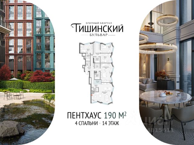 В продаже 4-комнатная квартира квартира в элитном квартале "Тишинский бульвар". Общая площадь квартиры - 152.90 кв.м. Этаж 5 из 9. Корпус 8С1. "Тишинский бульвар" - тихий зелёный элитный квартал на Тишинке, в престижном и комфортном районе центра Москвы. В нём создан уникальный для элитного дома прогулочный бульвар в своём огромном парке 1,9 га. В парке оборудованы зоны для активного и тихого отдыха, крытые галереи, приватные зелёные комнаты, многофункциональная спортивная площадка, воркаут-зона, детская площадка, сухой фонтан, ручей. В пешей доступности Римско-католический кафедральный собор. Всего в полутора километрах от квартала находятся Патриаршие пруды - излюбленное место для летних прогулок, воскресных бранчей и романтических ужинов. Белая площадь расположена ещё ближе - на расстоянии 1,2 километра. Это точка концентрации деловой жизни и модных ресторанов. В "Тишинский бульваре" только для жителей и их гостей создан уникальный для элитного дома прогулочный бульвар в собственном огромном парке площадью 2,1 га, который занимает 70% территории квартала. Бульвар проходит через весь квартал и объединяет в общее пространство три двора: Кленовый, Рябиновый и Ивовый. В парке созданы крытые галереи и приватные зелёные комнаты для отдыха и медитаций в любую погоду. Насыщенное озеленение многолетними растениями с разными периодами цветения сохраняет территорию квартала красивой круглый год. В квартале насыщенная инфраструктура только для жителей, включая Clubhouse. Здесь оборудованы пространства для здорового образа жизни по стандарту FIT LAB: в парке - многофункциональная спортивная площадка, воркаут-зона, место для занятий йогой и медитации; бесплатный фитнес-клуб с бассейном. Для маленьких жителей доступны детская площадка и игровая комната по стандарту KIDS LAB. Дома оснащены самыми полными и лучшими системами.
