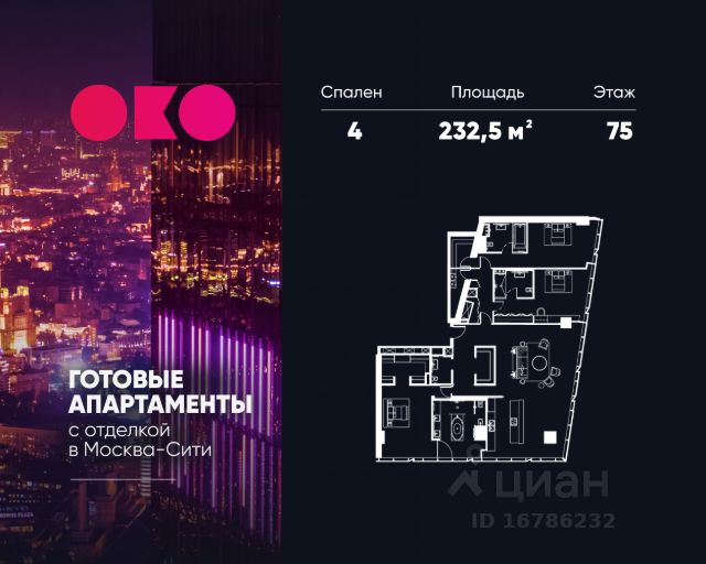 Capital Towers — это три современных жилых небоскрёба у Москва-Сити на берегу реки. Высота каждой башни — почти 300 метров, из окон открываются панорамные виды на центр Москвы, Москва-Сити, Лужники, МГУ и парк "Красная Пресня" Указанная акционная стоимость доступна при 100% оплате или ипотеке. Цена действует до 31.03.2026. Стоимость без акции 141 739 202 р. Уникальная двухсторонняя 4-х комнатная квартира для дружной семьи площадью 128,2 кв. м, расположенная на 66 этаже в башне City. Удачное планировочное решение позволяет организовать комфортное пространство из 3-х видовых спален и просторной угловой кухни-гостиной площадью 53 кв. м. Изолированная зона мастер-бедрум с собственной гардеробной и ванной комнатой с панорманым окном. Из окон квартиры открываются завораживающие виды в сторону ул. 1905 года, парк Красная Пресня, Дом Правительства РФ, гостиницу Украина и Москва-реку. Квартира предлагается к продаже без отделки. Комплекс создан для комфортной и спокойной жизни: закрытая территория, охрана, подземный паркинг с зарядками для электромобилей, фитнес, СПА, кафе, магазины, детские зоны. Capital Towers — это сочетание комфорта, современного стиля и захватывающих видов на Москву
