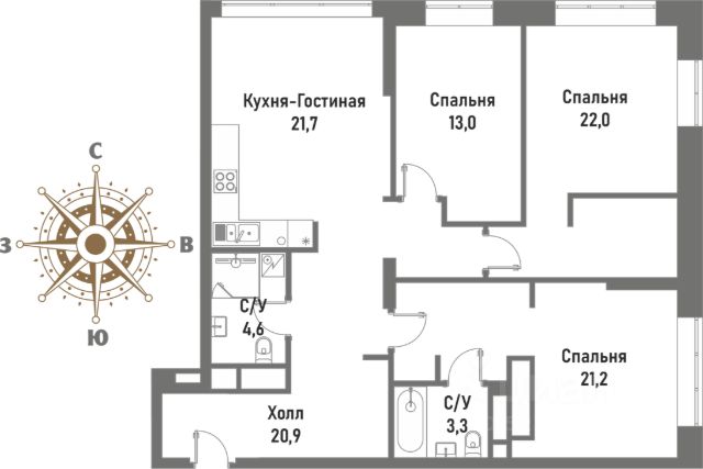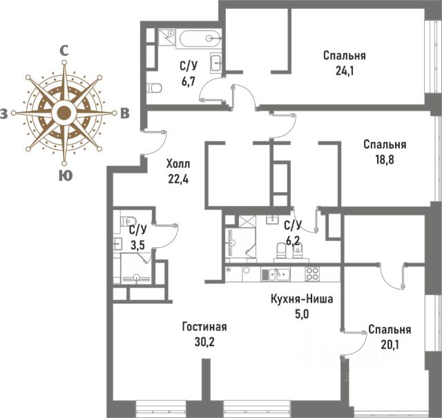 Продаётся 4-комнатная квартира в сданном доме (Рубцовско-Дворцовая, 4 (Корпус 3)), срок сдачи: II-кв. 2021, общей площадью 137.3 кв.м., на 18 этаже. Жилой комплекс премиум-класса "Ренессанс" расположен на Рубцовско-Дворцовой улице исторического района Сокольники, в неск. мин. ходьбы от знаменитого парка "Сокольники", где можно прекрасно проводить время всей семьей. ЖК "Ренессанс" - это 2 клубных дома, в которых представлено более 80 планировок - от однокомнатных квартир-студий до двухуровневых с каминами и собственными террасами на крыше. Квартиры продаются с полной отделкой, что обеспечивает комфорт проживания в доме сразу после получения ключей, т.к. исключает длительный период ремонта квартир - у вас и соседей, а также сохраняет презентабельные входные группы в идеальном состоянии. Премиальная отделка квартир "под ключ" выполнена европейскими специалистами по эксклюзивным дизайн-проектам с использованием дорогих материалов: экологичное напольное покрытие - инженерная доска TRIO на хвое (материал - дуб) и керамогранит KERAMA MARAZZI с обогревом пола; стяжка пола с шумоизоляцией; современные системы кондиционирования и сантехническое оборудование премиум-класса - Villeroy&Boch, Grohe, Geberit Duofix; выключатели и розетки - Berker. Высокие потолки - 3,2 м и входные двери квартир - 2,4 м со вставками из массива дуба, выполненные в едином стиле, подчеркивают премиальный статус владельцев. Из панорамных окон премиального бренда Schuco открываются завораживающие виды на сияющие в лучах солнца купола церквей и храмов, зелень легендарного парка "Сокольники" и национального парка "Лосиный остров", излучины реки Яузы с величественной гранитной набережной, старинные здания, среди которых дворец императрицы Елизаветы Петровны, небоскребы "Москва-Сити", Останкинскую телебашню и приватную, охраняемую территорию комплекса с концепцией "двор без машин", изысканным ландшафтным дизайном, богатой коллекцией растений, пространствами для отдыха с роскошным фонтаном с красивой подсветкой, элегантной перголой, большими шахматами, детскими городками и спортивными площадками. Роскошный интерьер лобби: натуральный испанский мрамор, вертикальный фонтан, репродукции картин эпохи Возрождения, великолепная итальянская люстра ручной работы с подвесками из хрусталя CutCrystal и муранского стекла, иранские ковры, дизайнерская мебель. Лифты премиум-класса ThyssenKrupp. Консьерж-сервис. На этажах мусорокамеры закрытого типа. Из квартиры можно связаться с консьержем по видеодомофону британской компании BAS-IP. Уникальная транспортная доступность: 5 мин. на авто до ТТК и Русаковской эстакады; 10 мин. - до Садового кольца и ул. Земляной Вал; 15 мин. - до Кремлевской наб. В шаговой доступности - ст. м. и БКЛ "Сокольники" и "Электрозаводская". Развитая собственная инфраструктура: подземный паркинг, здание фитнес-центра с бассейнами, объекты торговли и сферы услуг. Отличная инфраструктура респектабельного района Сокольники: детсады, элитные общеобразовательные, музыкальные