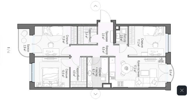 Продаётся 4-комнатная квартира площадью 161.4 кв.м на 54 этаже 55 этажного корпуса Эльбрус в квартале небоскребов "Апсайд Тауэрс". С видом на останкинскую башню, ботанический сад, ВДНХ, парк Сокольники, Центр, Москва Сити. Номер квартиры А5404. "Апсайд Тауэрс" - технологичный квартал строится в динамично развивающемся Бутырском районе, в 3 мин. от метро, в 5 мин. от ТТК. На территории 7 га возводится 5 высотных башен от 19 до 58 этажей, названных в честь главных вершин земли. Квартиры с панорамными окнами в пол, высокими потолками и современными инженерными решениями. В проекте: - приточновытяжная вентиляция (воздух по качеству не уступает горному); - пятиступенчатая очистка воды с сохранением полезных минералов; - центральное кондиционирование; - внутрипольные конвекторы; - системы безопасности и мониторинга микроклимата; - высокоскоростной интернет на всей территории; - подземный паркинг с зарядками для электрокаров. Социальная инфраструктура: - Upside Клуб (более 2 000 м²) — спацентр на 47м этаже башни "Атлас" (джакузи, сауна, залы для релаксации и йоги), барбекюпатио, гостиная с камином и роялем, коворкинг, переговорные, домашний кинотеатр и др.; - смотровые террасы с видами на город, парки, Останкинскую башню, ВДНХ, Ботанический сад и МосквуСити; - ландшафтный парк 2,5 га с сенсорным садом, игровыми и спортивными площадками; - государственная школа и детский сад; - более 15 000 м² коммерческой инфраструктуры. Бутырский район развивается и станет новым деловым районом Москвы. По программе "Индустриальные кварталы" на территории Огородного проезда построят образовательные и спортивные учреждения, торговые центры, кафе, банки и общественноделовые здания. Рядом — Парк Останкино, ВДНХ, Сокольники, Гончаровский парк, дизайнзавод Flacon и "Хлебозавод". До центра Москвы на авто — 15 мин. Застройщик: ООО "СЗ "КДевелопмент" (Upside Девелопмент).