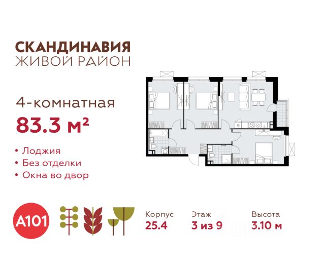 Продается четырехкомнатная квартира 332 в новостройке Жилой район "Скандинавия" по адресу Москва, ТиНАО, Новомосковский АО, Коммунарка пос., жилой комплекс Скандинавия, 37.2.2. Общая площадь квартиры - 66.20 кв. м., этаж 15 из 18, секция 2. Тип проекта, по которому построен дом - монолит, компания-застройщик - ООО "А101". Стоимость квартиры - 27074476 Р. Срок сдачи - 2 квартал 2026. ПРЕДЛОЖЕНИЯ ОТ ЗАСТРОЙЩИКА В МАРТЕ 2026: Ипотека от 13,9 % для всех! На весь срок. "Семейная ипотека" вернулась. Ставка от 3,5 % на весь срок! Без удорожания! Выгодное ипотечное комбо: Ипотека от 2200 р./мес. и от 6 % после рождения ребёнка! Ипотека для всех "Держи пять!" - ставка 5 % на 2 года! *более подробную информацию по скидкам и акциям уточняйте в отделе продаж ЖК "Скандинавия" на границе Бутовского лесопарка (1610 га) - это баланс качественного жилья и сервисов, зелёных пространств для активного и созерцательного отдыха. Выразительная архитектура и цветовая гамма монолитных корпусов комфорт- и бизнес-класса (8-17 этажей) созвучны скандинавским мотивам, органично интегрированы в великолепный природный контекст. Огороженные дворы свободны от машин, в них продуманы места для отдыха и работы на свежем воздухе, озеленение, детские и спортивные площадки. Для прогулок, встреч и районных праздников - площадь Туве Янссон с "сухим" фонтаном, вековыми дубами и единственным в мире памятником писательнице; пешеходный променад 2 км; 3 крупных природных ручья; более 15 км велосипедных и прогулочных дорожек с арт-объектами. Инфраструктура района включает современные школы и детские сады, центр впечатлений, фитнес-клубы, развивающие и творческие центры, магазины, кафе, салоны красоты. На подземных этажах - паркинги и кладовые. Преимущества "Скандинавии": - ст. метро "Потапово" - 100 м от ближайших домов (открыта!) - удобные выезды на трассу Солнцево - Бутово - Варшавское шоссе и ул. Бачуринская - свои школы и детские сады - инфраструктура на первых этажах и рядом с домом - лесопарк, природные водоёмы, прогулочные маршруты