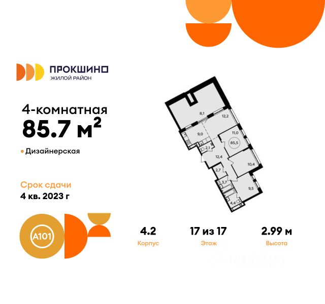 Продается четырехкомнатная квартира 345 в новостройке Жилой квартал "Прокшино" по адресу Москва, ТиНАО, Новомосковский АО, Сосенское С/П, пос. Сосенское, ул. Лобановский лес, д. 13.. Общая площадь квартиры - 85.70 кв. м., этаж 17 из 17, секция 2. Тип проекта, по которому построен дом - монолит, компания-застройщик - ООО "А101". Стоимость квартиры - 29602030 Р. ПРЕДЛОЖЕНИЯ ОТ ЗАСТРОЙЩИКА В ФЕВРАЛЕ 2026: Скидки до 10% на все квартиры. Только в офисах продаж до 28 февраля. Ипотека от 13,9 % для всех! На весь срок. "Семейная ипотека" вернулась. Ставка от 3,5 % на весь срок! Без удорожания! Выгодное ипотечное комбо: Ипотека от 2200 р./мес. и от 6 % после рождения ребёнка! Ипотека для всех "Держи пять!" - ставка 5 % на 2 года! *более подробную информацию по скидкам и акциям уточняйте в отделе продаж ЖК "Прокшино" строится на юго-западе Москвы всего в 500 м от одноимённой станции метро, что обеспечивает быстрый и удобный доступ в любую точку столицы. Вдоль живописного пруда почти на километр протянулась благоустроенная набережная. Монолитные дома комфорт- и бизнес-класса - узнаваемой выразительной архитектуры, с архитектурно-художественной подсветкой фасадов. Пешеходный мост через пруд - украшение района и главный путь от метро. На берегу обустроены зоны отдыха с качелями, деревянными настилами, шезлонгами и тренажёрами. Зелёные дворы свободны от машин. В районе реализуется проект благоустройства "Природа - в каждый двор!". Рядом с "Прокшино" появятся всесезонный горнолыжный курорт, аквапарк с дайвинг- и сёрфинг-центром. Развивается крупный бизнес-квартал. В пешей доступности от дома открываются детские сады, активно строится новое здание одной из лучших школ Москвы. Работают магазины, кафе, бытовые сервисы. Через район проходят веломаршруты и прогулочные дорожки. Преимущества "Прокшино": - 500 м до метро "Прокшино" - благоустройство "Природа - в каждый двор!" - набережная Хованского пруда - уникальная инфраструктура - "Школа Ямбурга" (топ-50 Москвы)