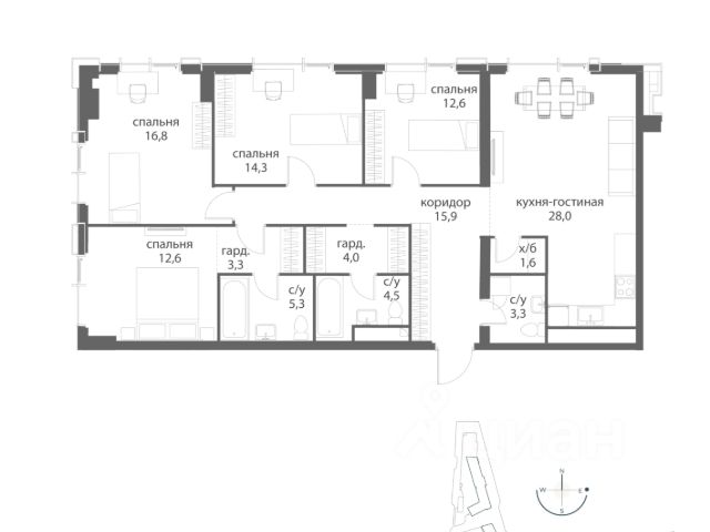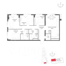 Около 10 минут до Москва Сити и ТТК! В продаже 4-к квартира от застройщика. Общая площадь 130.9, жилая 104.2, кухня 26.7. Квартира расположена на 22 этаже жилого квартала "Событие-6", корпус 2, Секция 5. Квартира без отделки. Срок сдачи: 4 кв. 2029 года. СОБЫТИЕ.6 — финальный дом парк-квартала СОБЫТИЕ на Мосфильмовской. Переезжайте в уже сформированный квартал с готовой инфраструктурой и парком! Премиальный жилой комплекс в престижном районе Москвы предлагает стильную архитектуру, продуманное благоустройство и великолепно разнообразие общественных пространств. Выход в природный парк "Событие" площадью 12 га делает каждый день ярче — здесь хочется "заняться жизнью" здесь и сейчас. Архитектура СОБЫТИЕ.6 выдержан в ультрасовременном стиле и ориентирован на людей, которые выбирают передовые решения и модный дизайн. Оригинальная геометрия фасадов и большие площади остекления подчеркивают индивидуальность дома и создают узнаваемый силуэт. Архитектурный стиль разработан знаменитым московским бюро Atrium на основе дизайн-кода британских архитекторов LDA Design и UHA London, что обеспечивает сочетание локального контекста и международных подходов к градостроительству. Внутри — высокие лобби с потолками до 6,2 м, авторскими светильниками и эксклюзивной мебелью. Расположение Дом расположен в Раменках, на Мосфильмовской улице — в одном из самых престижных и комфортных для жизни районов Москвы. Это место, откуда одинаково удобно добираться и в исторический, и в деловой центр, и в ключевые природные зоны Запада столицы. Транспортная доступность: • Около 10 минут до Москва-Сити и ТТК. • Около 15 минут до Садового кольца. • Около 25 минут до аэропорта Внуково. • Около 7-10 минут до станций метро "Аминьевская" и "Мичуринский проспект" (в зависимости от маршрута). Рядом — ключевые магистрали (Кутузовский, Мичуринский, Ломоносовский проспекты, Аминьевское шоссе), что упрощает выезды как в центр, так и за город. Инфраструктура комплекса и дома: Парк-квартал СОБЫТИЕ — это среда, где комфорт и удобство жизни выведены на первый план. Уже работают десятки сервисов, кафе, магазинов и объектов ритейла; к моменту заселения СОБЫТИЯ.6 в квартале будут готовы школа, детский сад, магазины, салоны красоты, рестораны и другие необходимые повседневные функции. Главный центр притяжения — модный парк "Событие" от бюро Wowhaus. Благоустроенный бульвар и рекреационные зоны занимают около половины территории квартала, а природная часть парка площадью более 12 гектаров уже открыта. В парке проложены: • примерно 1,5 км беговых дорожек; • около 2,7 км велодорожек; • около 1,6 км экотропы; • детские и спортивные площадки, места для пикника, лекторий, декоративный огород, восстановленные биотопы. Парк "Событие" — финалист конкурса Правительства Москвы в номинации "Строительство парков и общественных пространств". Мультидвор Двор СОБЫТИЯ.6 — это мультимодальное пространство для жителей всех возрастов. Здесь предусмотрены: • игровые и развив