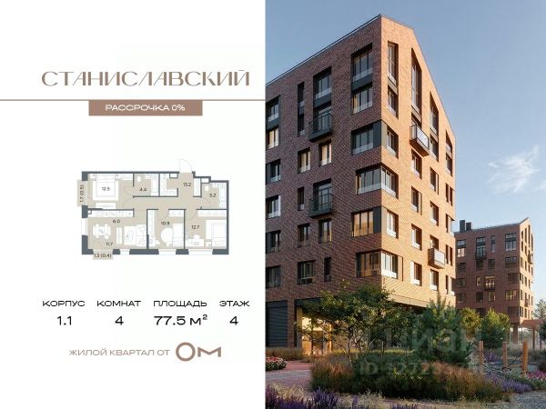 Беспроцентная рассрочка от застройщика. В продаже 4-комнатная квартира площадью 94.9 м², расположенная на 5 этаже в жилом квартале "Станиславский" — проекте бизнес-класса на Новорижском шоссе, всего в 10 минутах от Москвы. В квартире 172 Дом 1 (Корпус 1.1, секция 5) высота потолков — от 3 метров, просторная планировка с гардеробной и большой кухней-гостиной создают комфорт и свободу для воплощения ваших идей. В проекте есть разнообразные отделочные решения, что позволяет реализовать любые дизайнерские предпочтения и планировочные идеи. В "Станиславском" представлены квартиры на любой вкус и для любой семьи: студии, классические и европланировки, а также крупные 4- и 5-комнатные варианты. Все помещения предлагаются без отделки, что дает свободу для создания уникального пространства. Обустроенная территория предусматривает функциональное зонирование: зеленые бульвары, природные тропы, интерактивные зоны, центральная площадь с подиумом для мероприятий и спортивный кластер. Для жителей предусмотрены разнообразные сценарии досуга: тихие зоны для общения, массажные тропы и сад ароматных трав для оздоровления, всесезонные уличные игры и открытые поляны для спортивных и настольных развлечений. Также есть познавательная зона с огородом, скворечниками и микроскопами. В концепции ЖК "Станиславский" особое внимание уделено въездной зоне: здесь создана комфортная площадка для встреч с гостями, обрамленная живой изгородью. Отсюда также открывается доступ к специально оборудованной территории для выгула питомцев — всё продумано для удобства и уюта жителей.