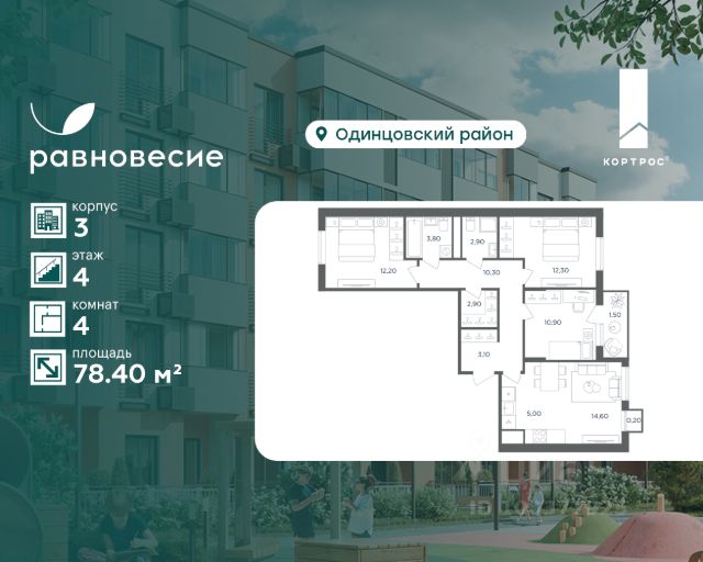 Указанная акционная стоимость доступна при 100% оплате или ипотеке без субсидирования. Цена действует до 23.03.2026 23:59:00. Стоимость без акции 27183224. Продаётся квартира с 4 комнатами общей площадью 81.70 кв. метров на 3 этаже жилого квартала комфорт-класса "Равновесие". На территории комплекса будет возведен детский сад на 360 мест, а на первых этажах жилых домов откроются кафе, магазины и все необходимое для удобства жителей. Локация "Равновесия" выделяется среди других пригородных ЖК разнообразием быстрых маршрутов до Москвы. Для автомобилистов преимуществом станут удобные выезды на Можайское шоссе, Рублёво-Успенское шоссе, Минское шоссе с платной трассой и другие. Также в пешей доступности находятся две ж/д станции — "Жаворонки" и "Здравница". Дорога на электропоезде до делового центра "Москва-Сити" составит всего 35 минут. Особенности ЖК: - Малоэтажная застройка: 4-6 этажей; - Благоустроенный пешеходный бульвар; - Пространства для отдыха и спорта; - Квартиры с террасами на последних этажах; - Квартиры с отдельным входом на первых этажах; - Внутренняя территория квартала свободна от машин; - Безбарьерная среда; - Помещения для хранения детских колясок и спортивного инвентаря.